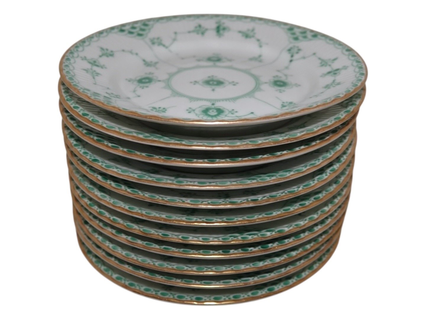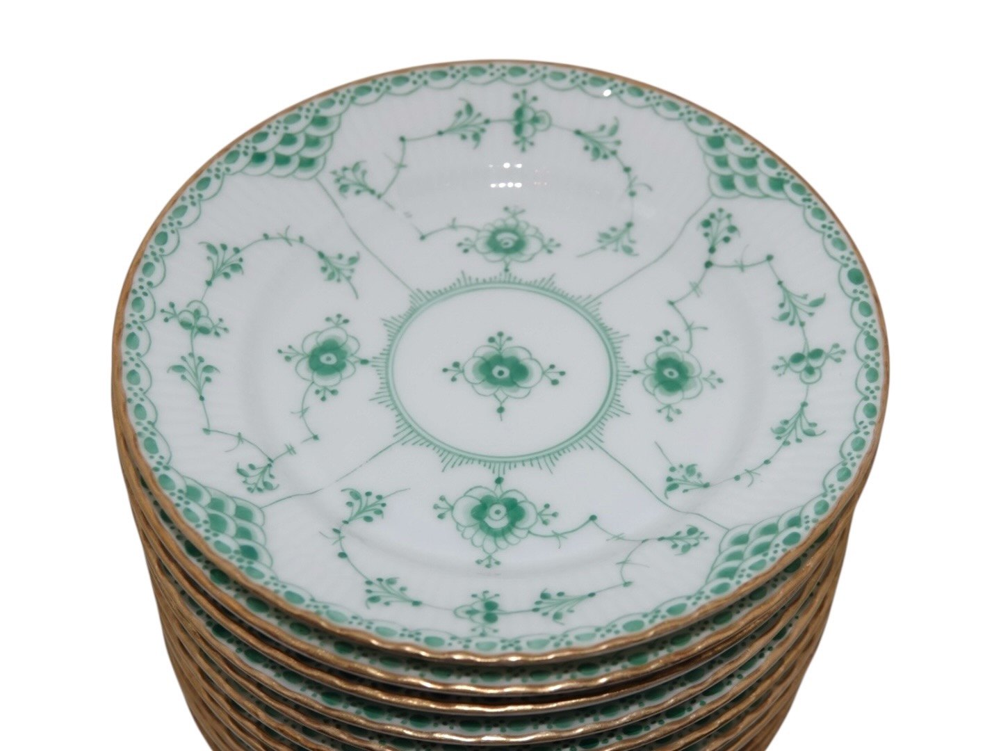Royal Copenhagen Green Fluted Half Lace with gold trim, side plate.