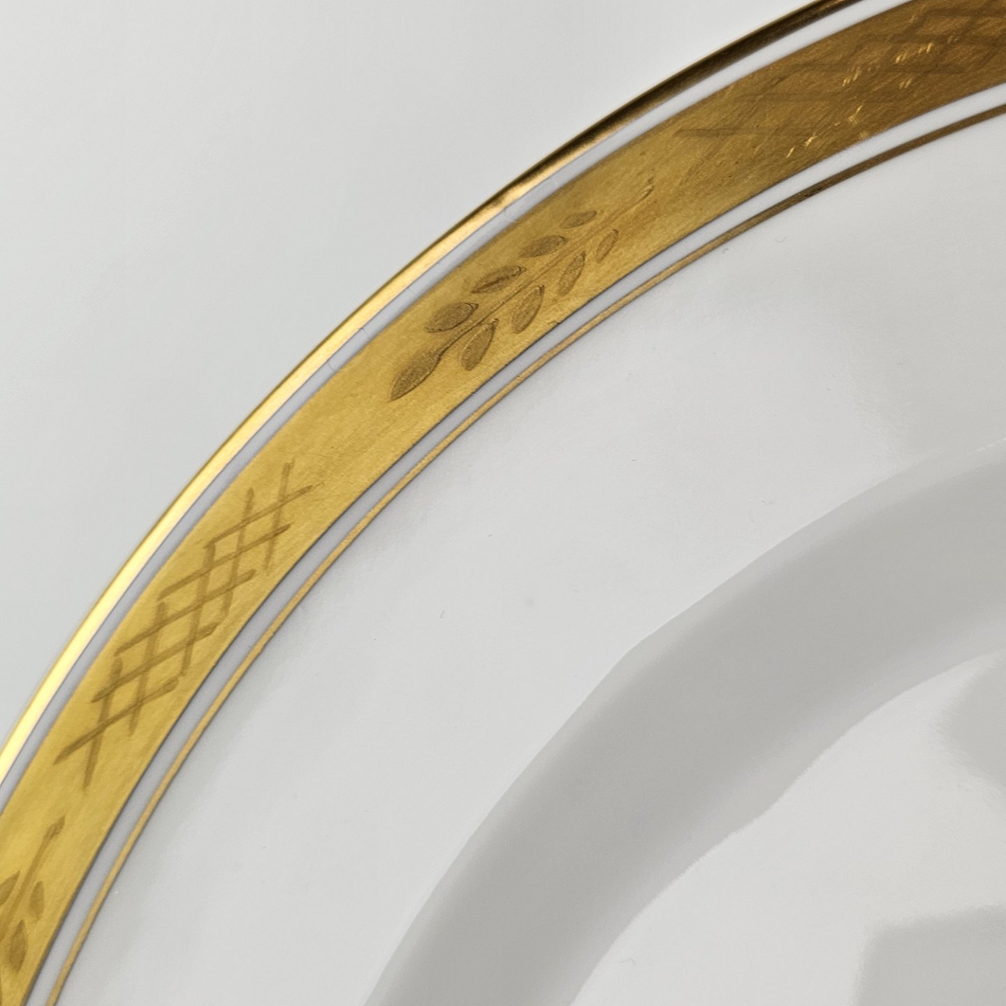 Stel nr. 607 er i hvidt porcelæn og har en guldkant med bladværk