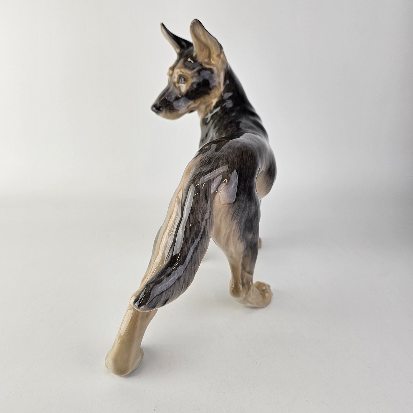 Figur i porcelæn med motiv af en stående schæferhund