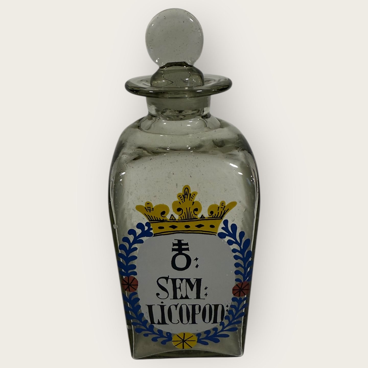 | Holmegaard apotekerflaske fra 1977, Sem Licopod, Mål: 17,5x6,5x6,5cm, flaskerne er mundblæste kopier af originale gamle apotekerflasker, Signeret Hg.