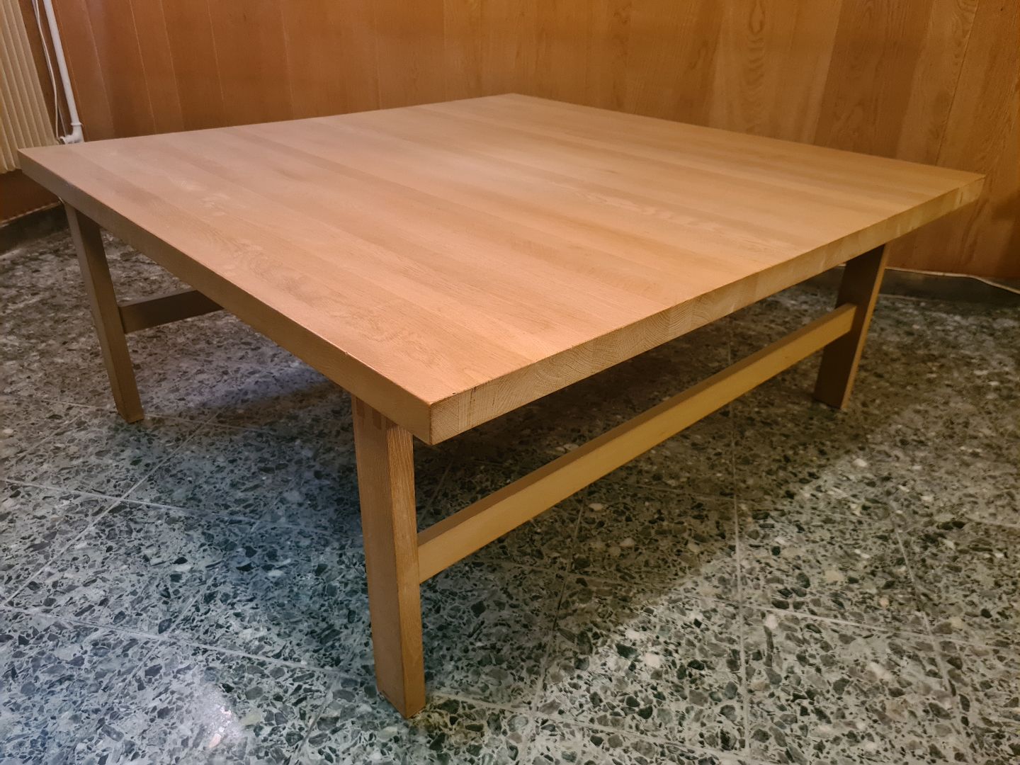 Kvadratisk sofabord fra 1970´erne i massiv eg. Formgivet hos Laboremus i Viborg. Fremstår pænt og velholdt uden nævneværdige brugsspor.