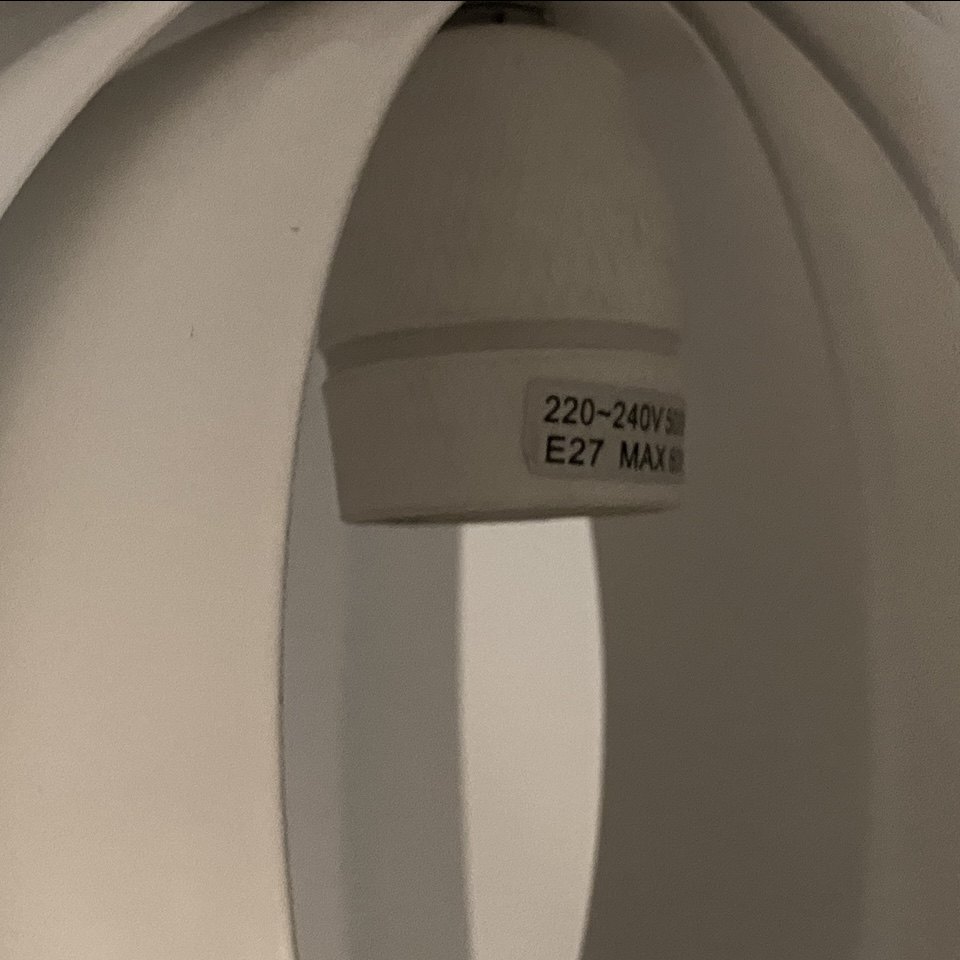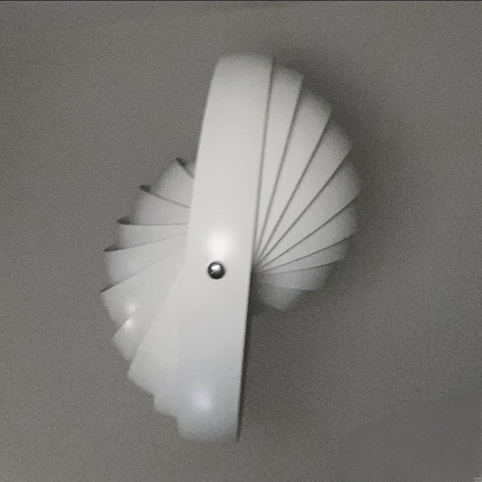 Verner Panton Pendel (The Moonlamp) udført af hvidlakeret metal. Formgivet i 1960, fremstillet hos Frandsen Lighting.