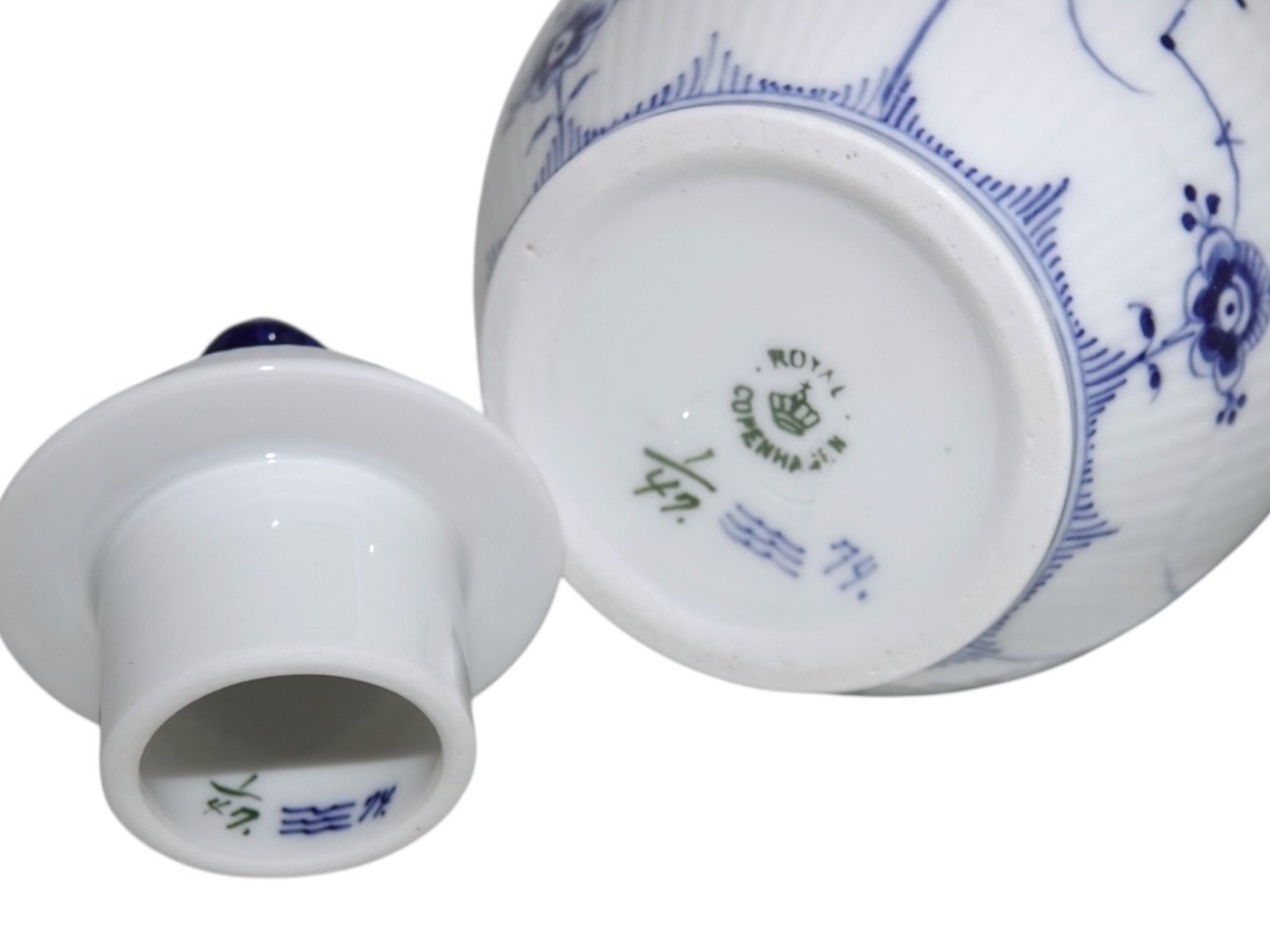 Royal Copenhagen Musselmalet Riflet, lille kaffekande.