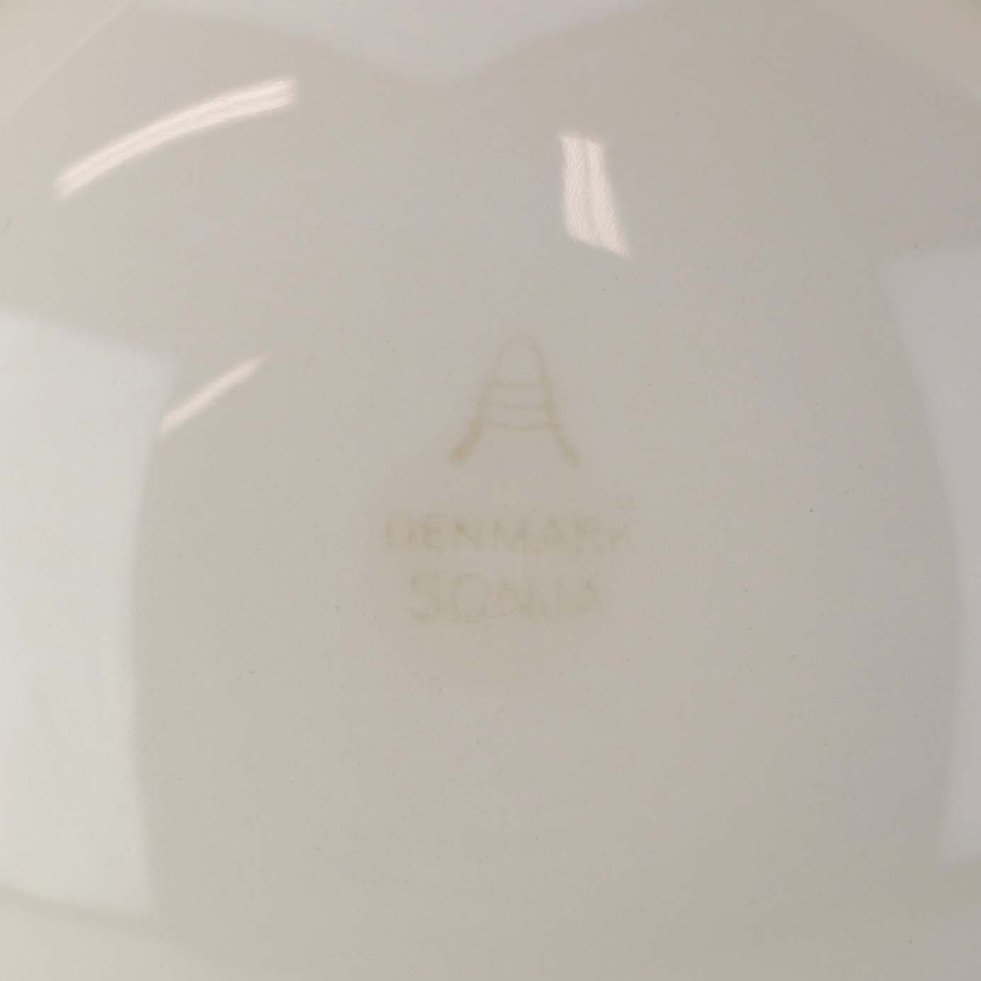 Fremstår med vandmærker på glasuren samt et enkelt minimalt nøk på kanten af fadet.