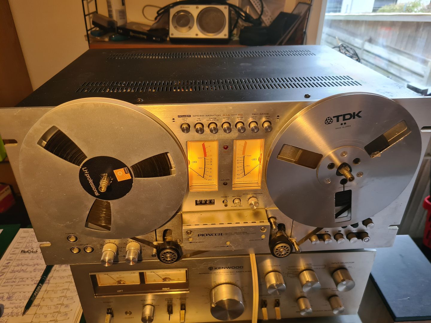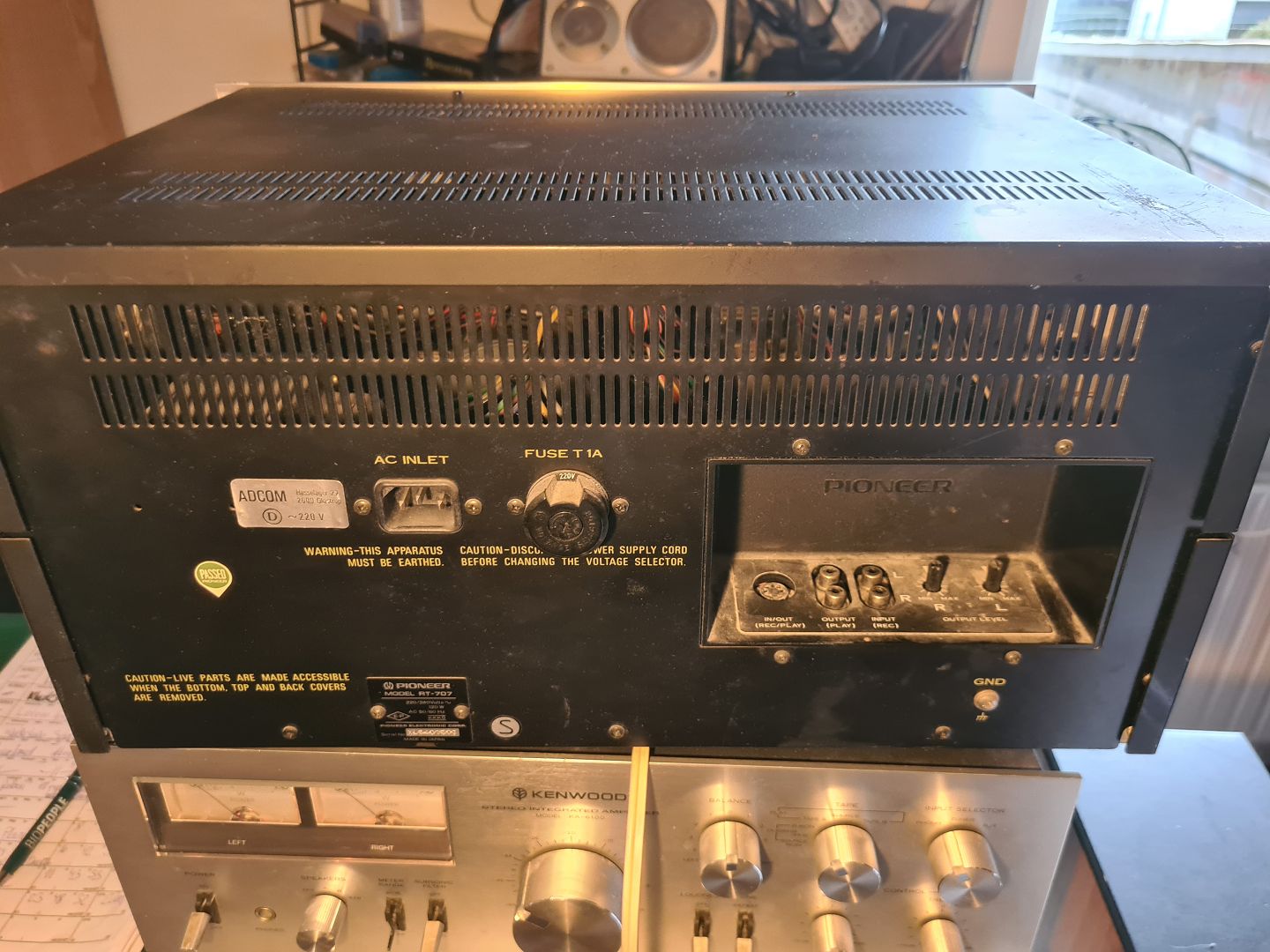Spolebåndoptager fra Pioneer model RT-707. Sælges til reperation eller reservedele. Tænder fint op, men play funktion går i stå nærmest med det samme når der er spoler på. Kører lidt længere uden spoler på. Spolefunktionerne kører ligeledes lidt længere inden de stopper.