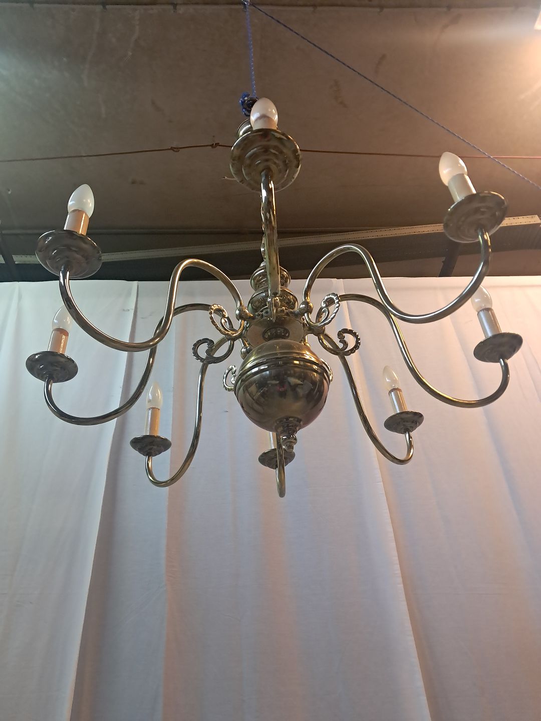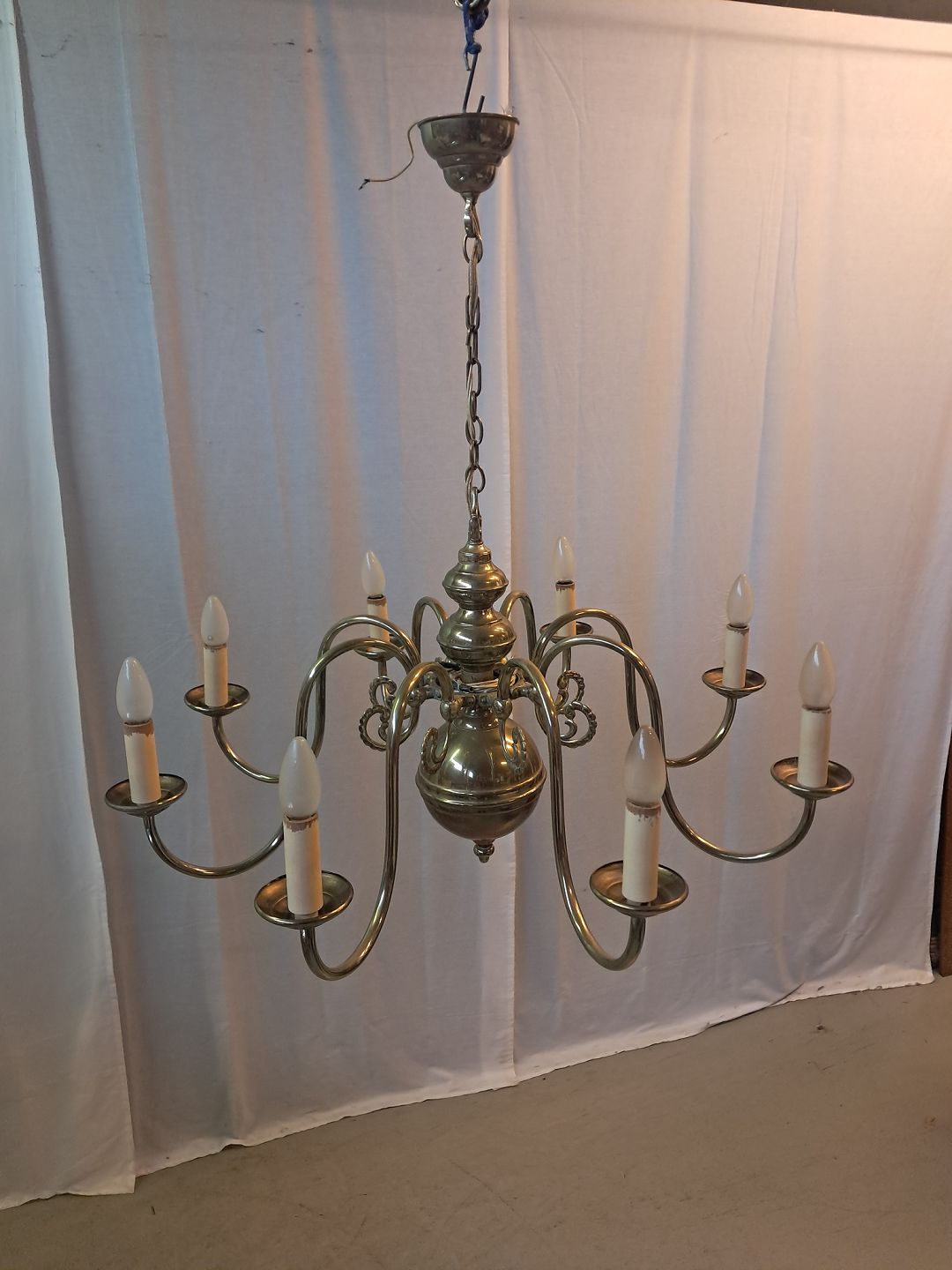 Stor kirkekrone i messing, fra 1930erne.