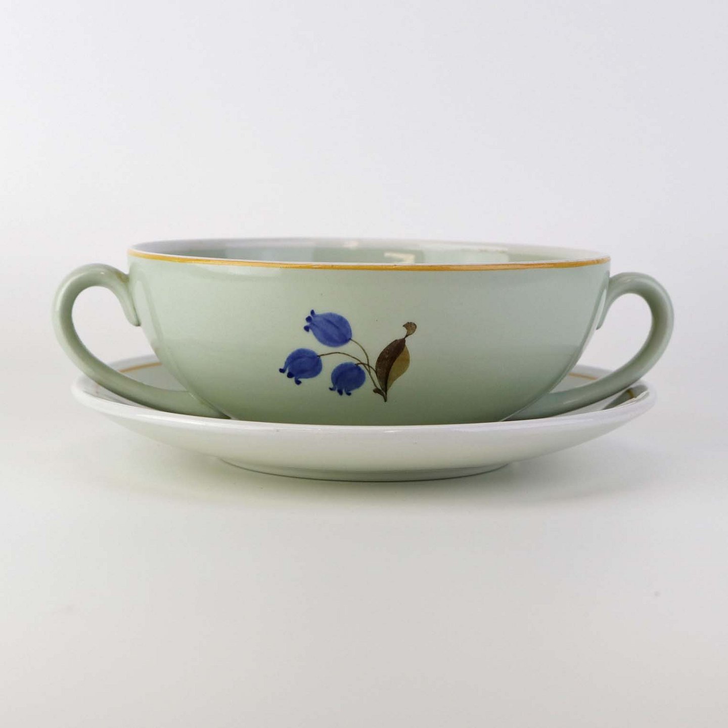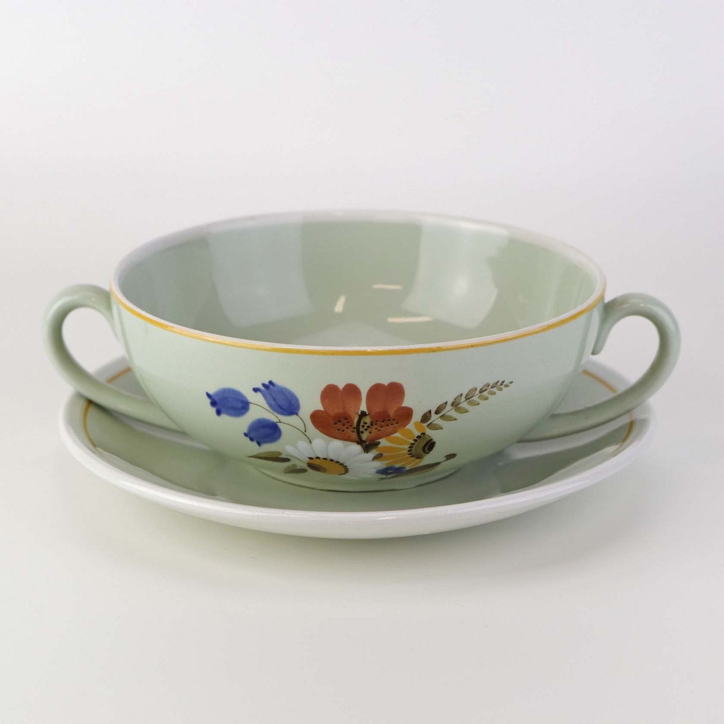 Suppekop med underkop i fajance fra stellet Frederiksberg. Nr. 265
