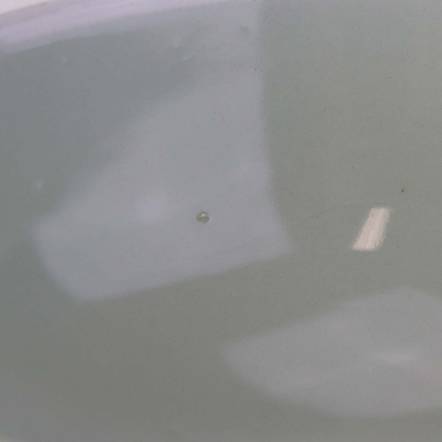 Fremstår med mindre ridse i glasuren, ujævnhed i glasuren på indersiden samt brugsspor på topkanten.