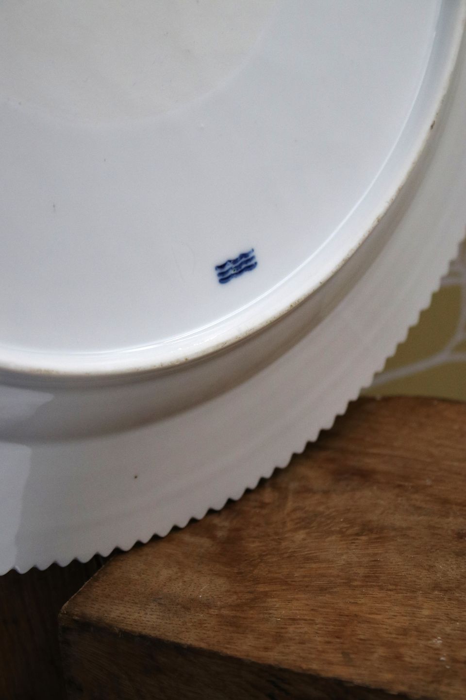 Fadet har en brændings revne på kanten og nogle små glasur mærker i bunden , se extra billeder.