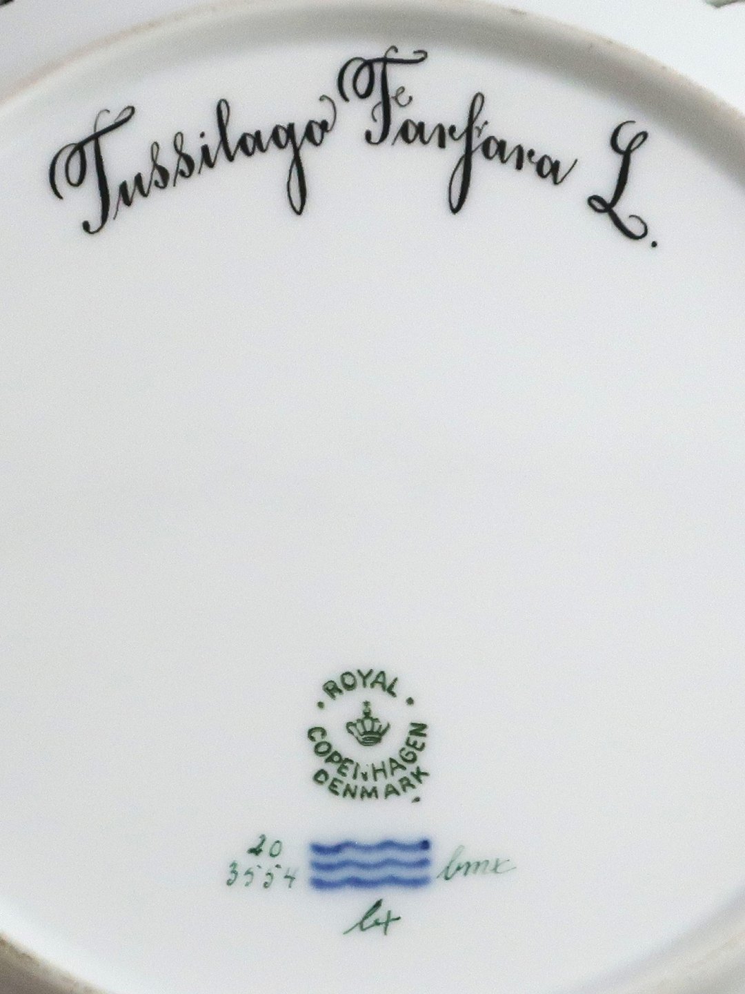 Royal Copenhagen, Flora Danica. Frokost tallerken med gennemskåret bort. Design #3554. Diameter 23 cm. (1 sortering). Tussilago farfara L