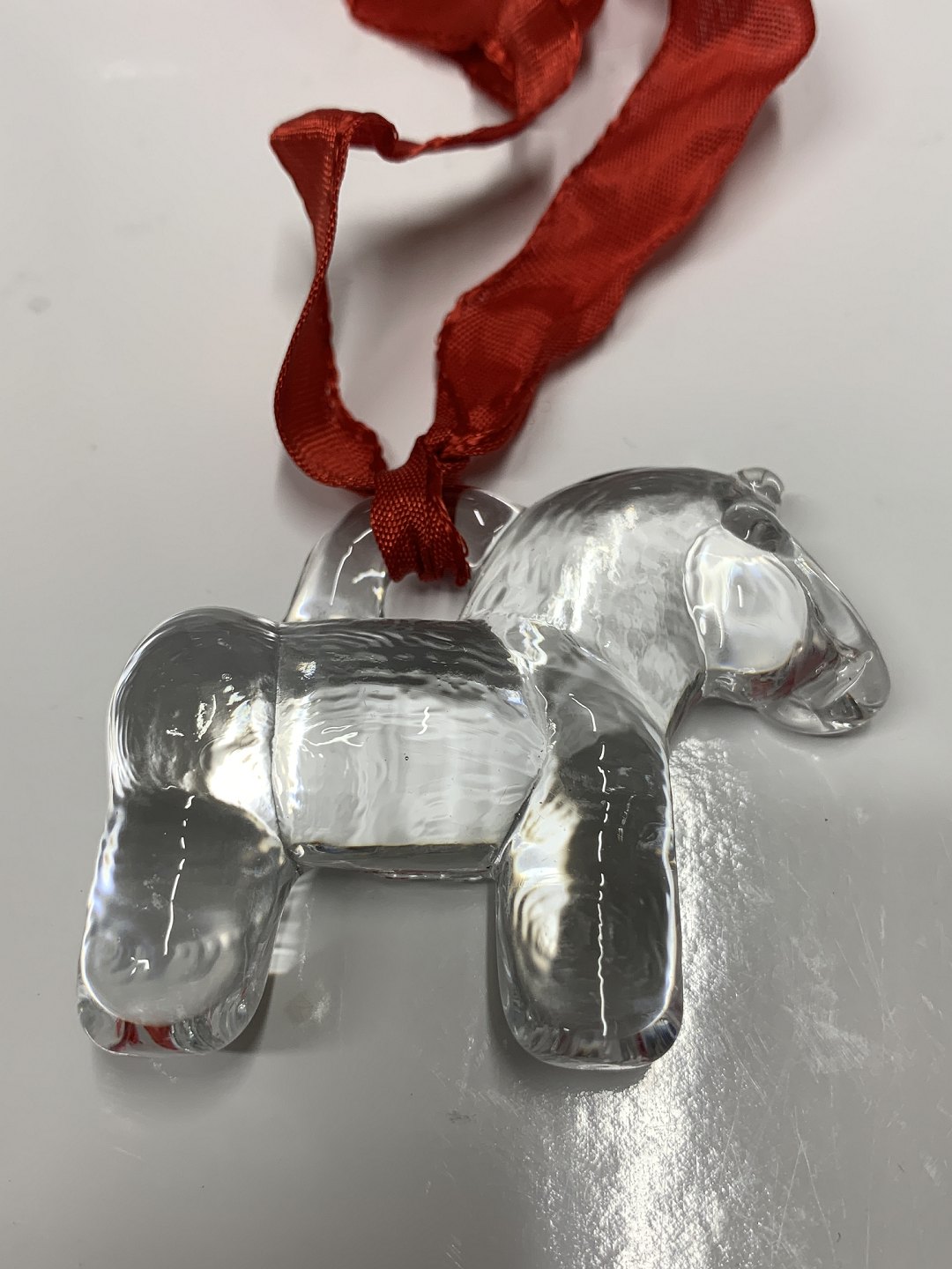 Glass hanging horse, Bertil Vallien, Kosta Boda.