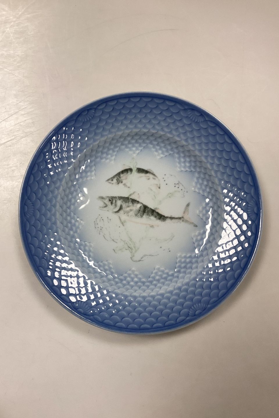 Bing and Grøndahl Blue Tone Fish Plate motif 10 Mackerel No. 716 - CHIPED/WORN