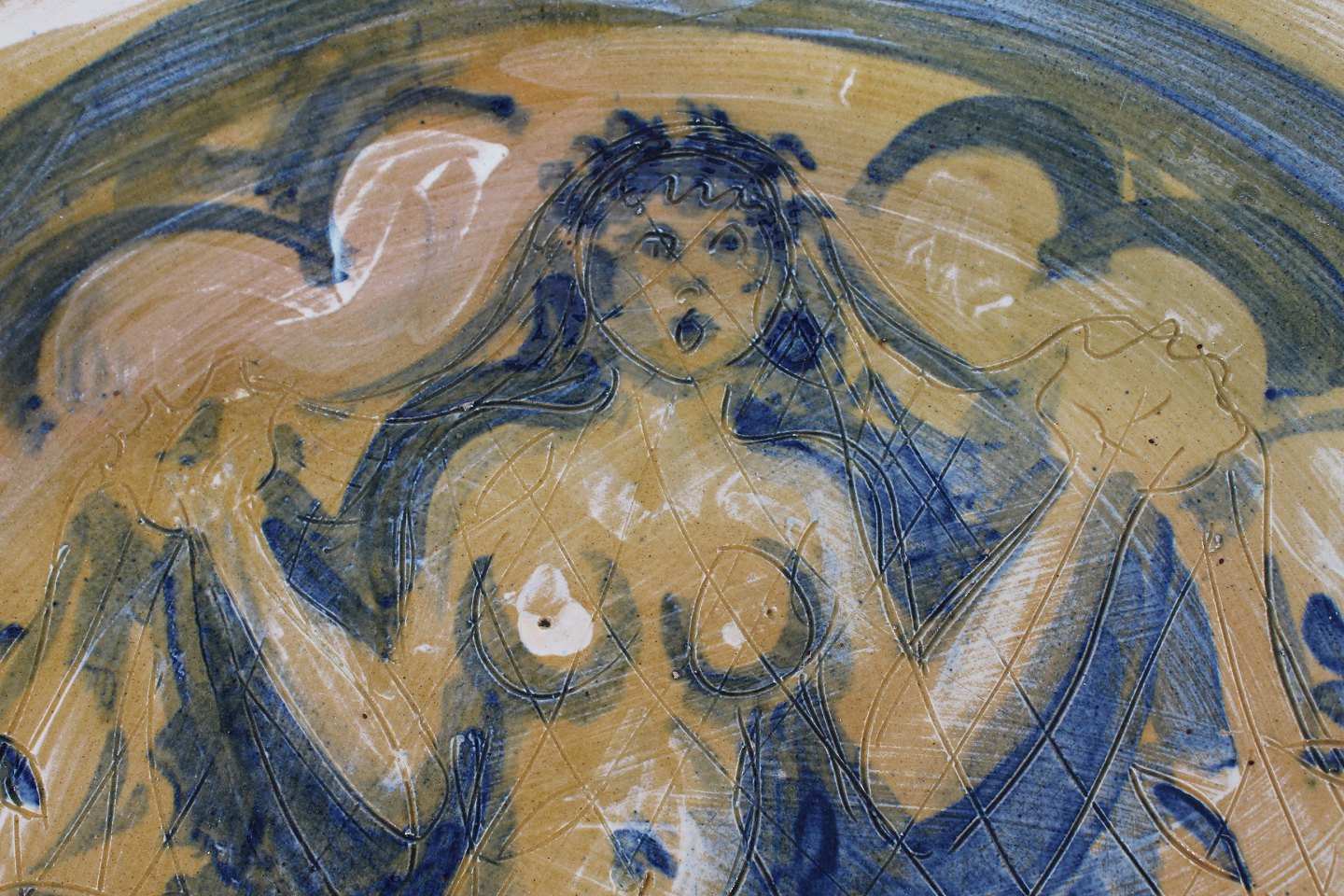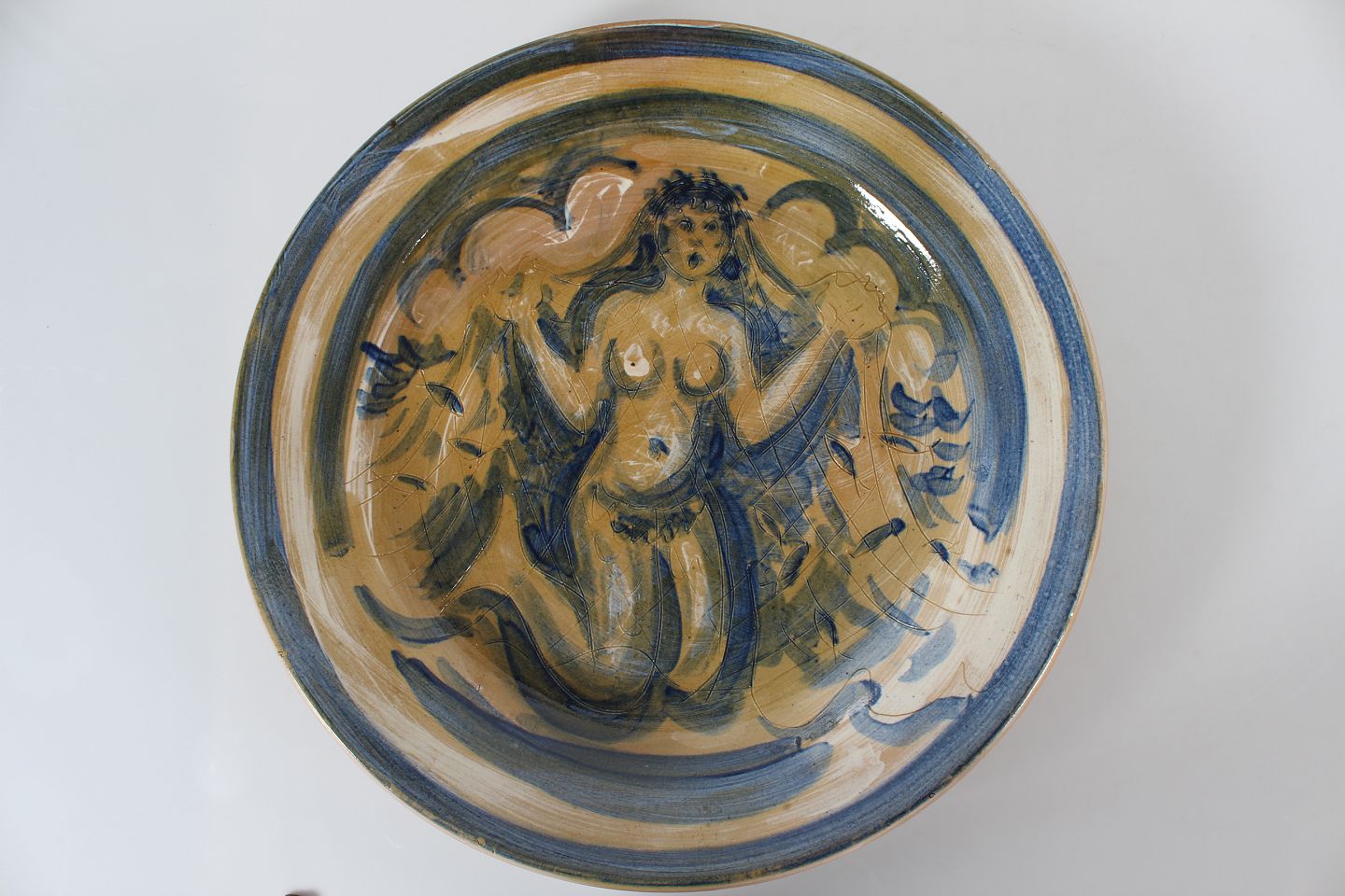 Meget stort keramik fad med havfruedekoration