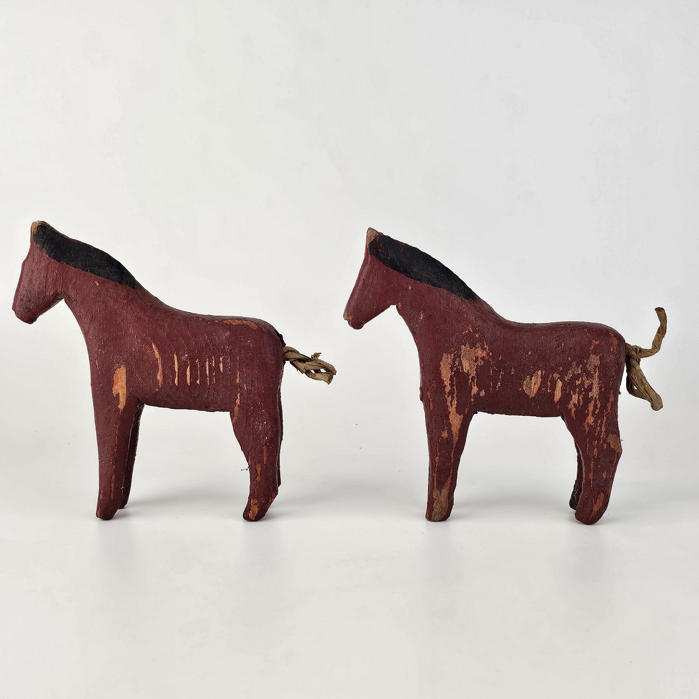 Figurer i malet træ med motiv af heste, formentlig fremstillet som fængselsarbejde