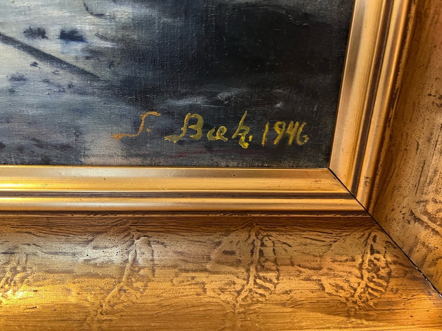 About the artworkArtist: The painting is a reproduction of a work by the renowned Danish artist Carl Bloch (1834-1890), executed by Thomas Bök in 1946. Subject: The work depicts King Christian II of Denmark, Norway and Sweden during his captivity at Sønderborg Castle. The king was interned in the castle's tower from 1532 until his death in 1559. Historical context: The painting is a historical scene that conveys a mood of reflection and isolation. It portrays the king in his cell accompanied by another man, probably a valet or a guard. Location of the original work: The original, large-scale painting is exhibited at the Statens Museum for Kunst (SMK) in Copenhagen. Condition: The work appears generally in good and well-preserved condition, although with minor signs of wear on the frame. Dimensions: 105 × 82 cm. Delivery: Delivery can be arranged.