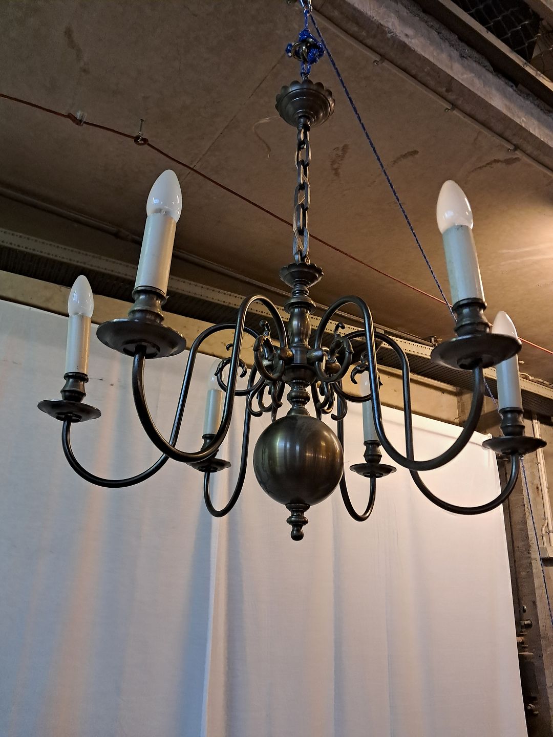 6-armet kirkekrone i bruneret messing, fra 1930erne.