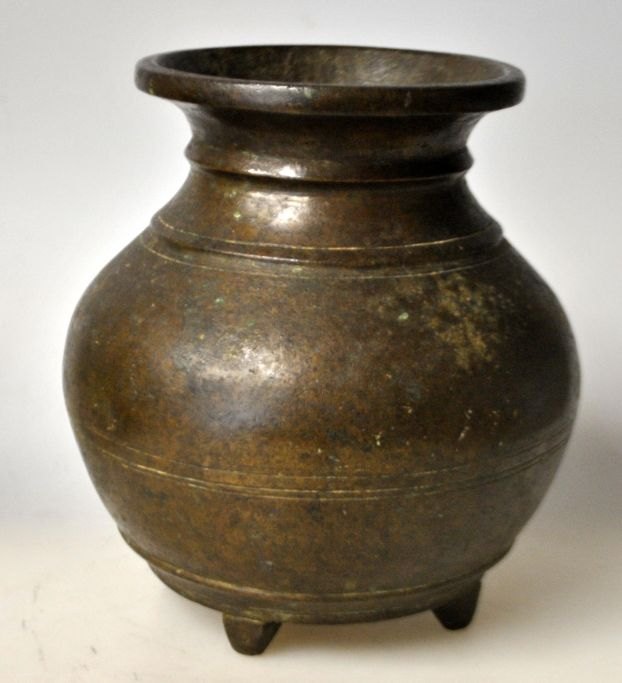 Kinesisk bronze censor, 17. årh. På tre ben og med stregdekorationer. H.: 14 cm.