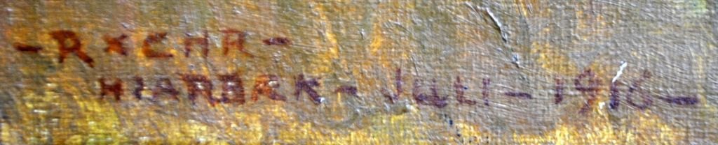 Christiansen, Rasmus (1863 - 1940) Danmark: Landskab ved Hjarbæk, 1916. Olie på lærred. Signeret: RxCHR - Hjarbæk - juli - 1916. H: 56 cm. B: 106 cm.