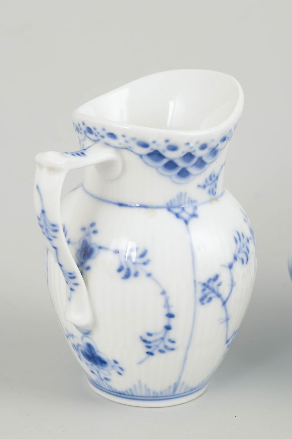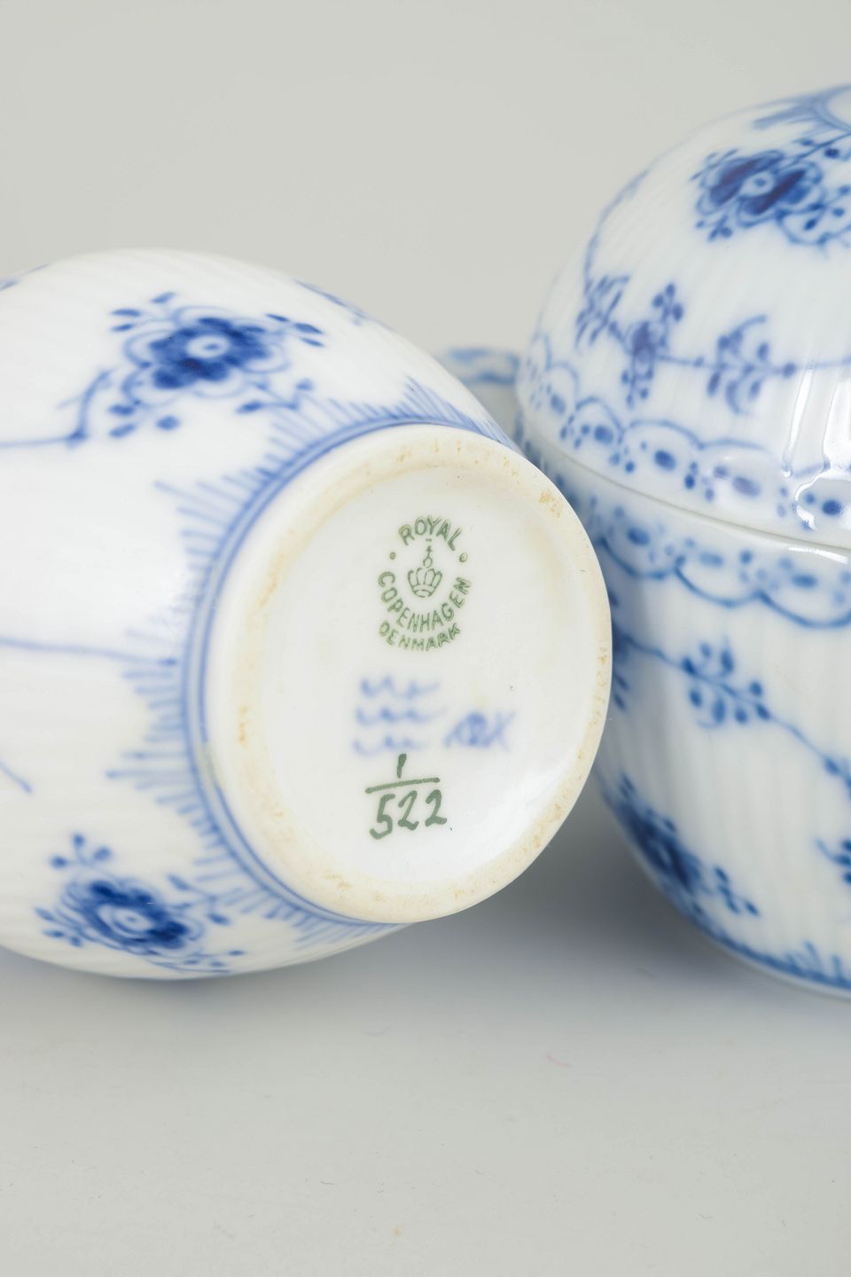 Introduced in 1885, Blue Fluted Half Lace represents a more decorative evolution of the original Blue Fluted Plain pattern. The combination of fluting, pierced lace border, and hand-painted decoration has made it one of Royal Copenhagen’s most enduring services. Continued production in the late 20th century maintained the same high standards of craftsmanship, making this set suitable for both everyday use and as an addition to earlier services.