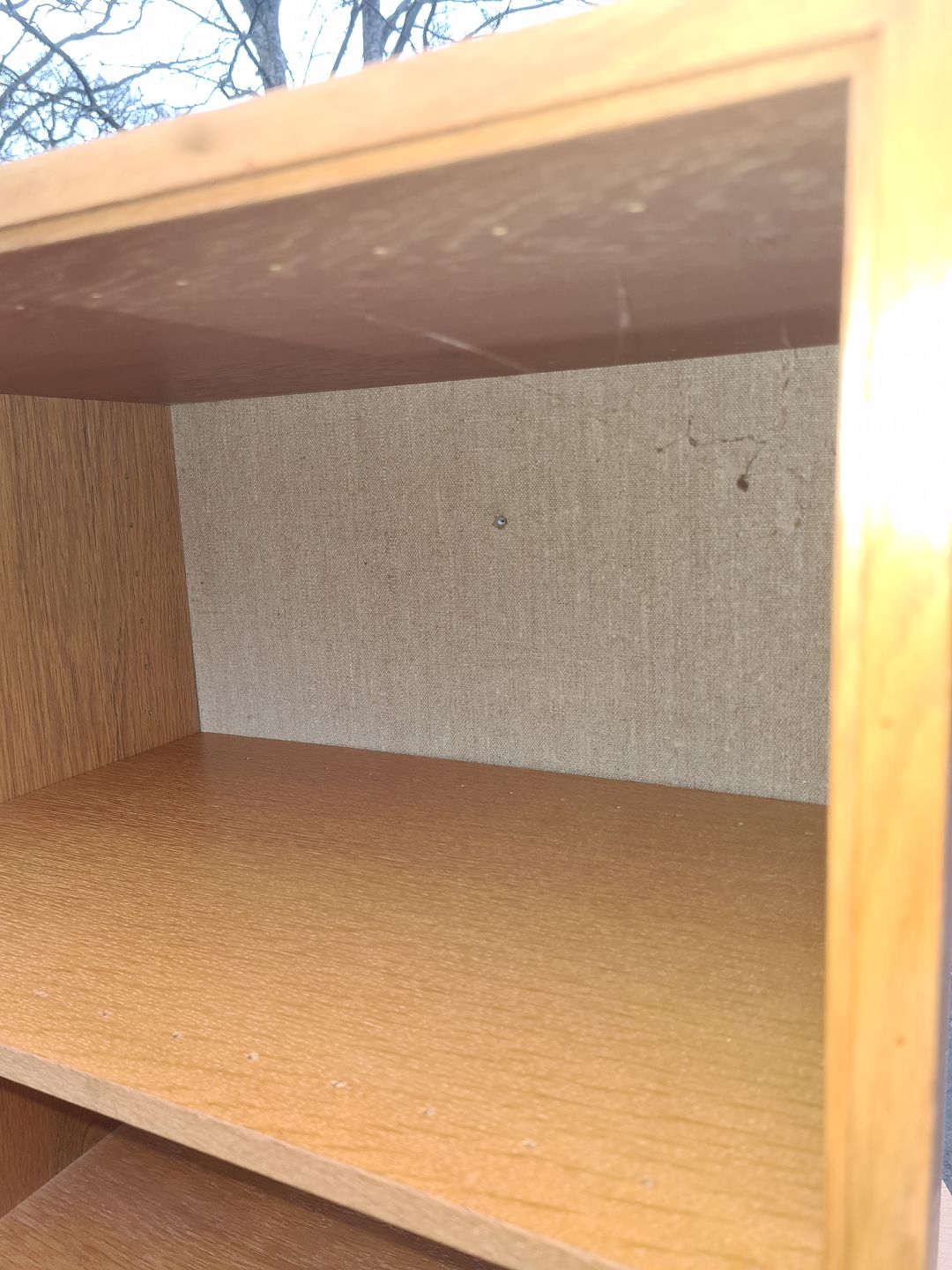 3 bogkasser i finéret eg og med hessian beklædt bagbeklædning. Ydført hos HG Funiture i 1970'erne. Fremstår pæne og velholdte uden de store brugsspor.