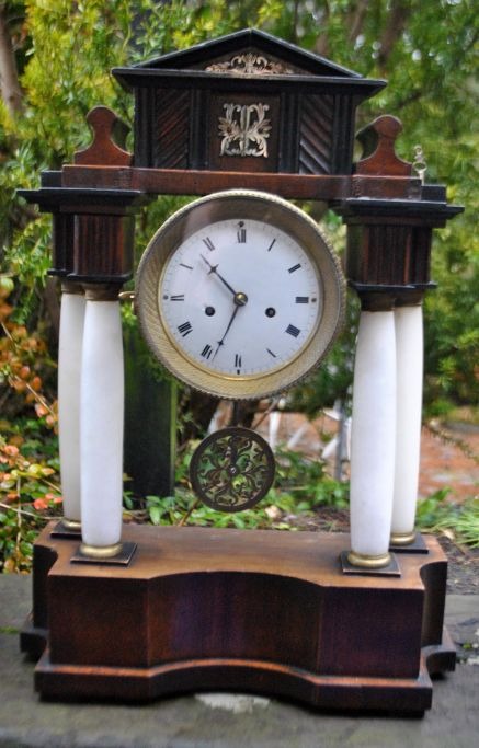 Søjleur i træ, messing og alabast, ca. 1830.