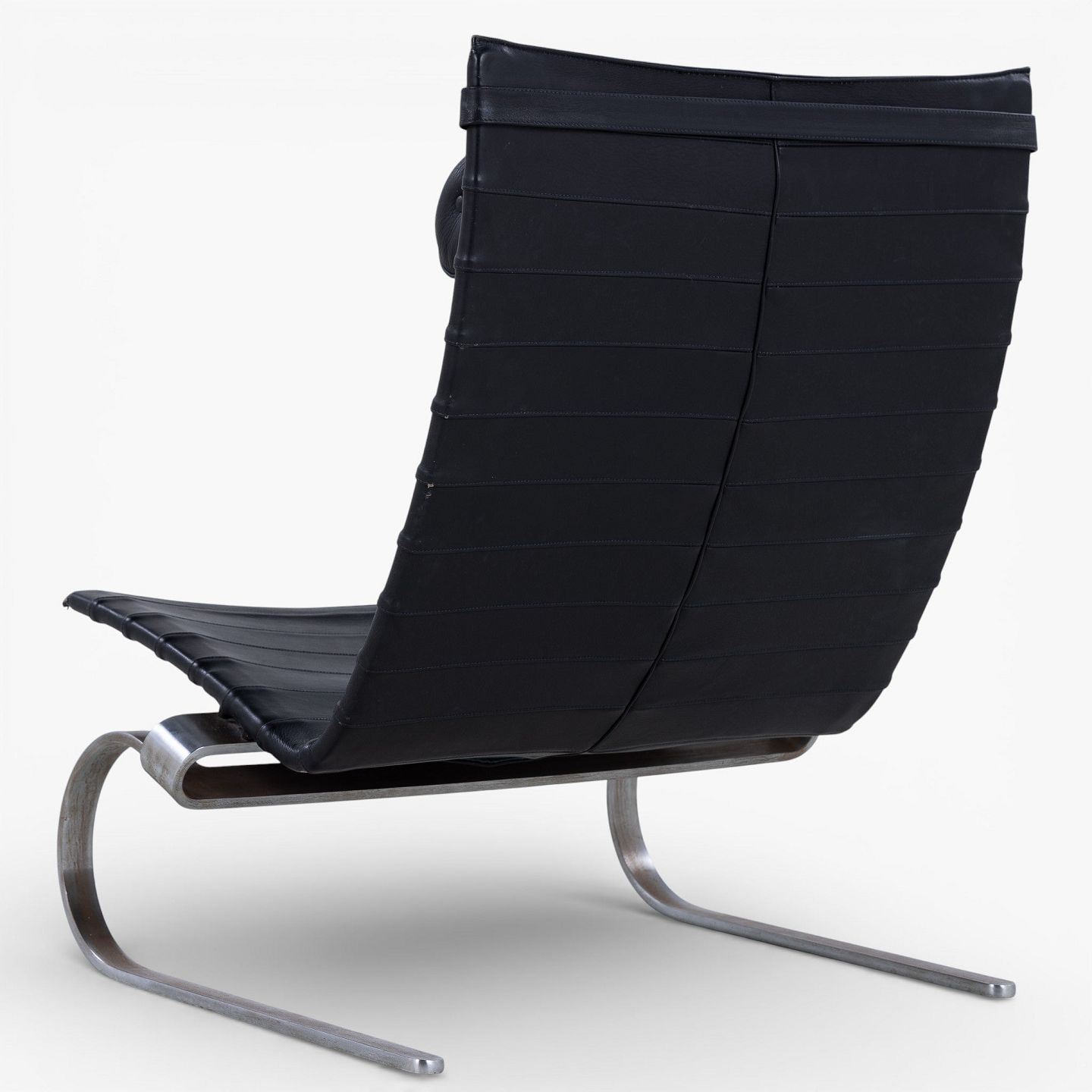 PK 20 - Lænestol i originalt sort læder med nakkehynde og stel af fjederstål. Formgivet i 1968.