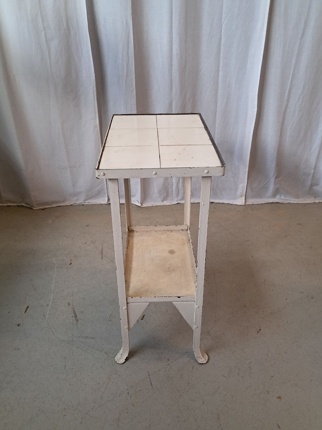Lille gasbord i malet metal med fliser, fra 1930erne.