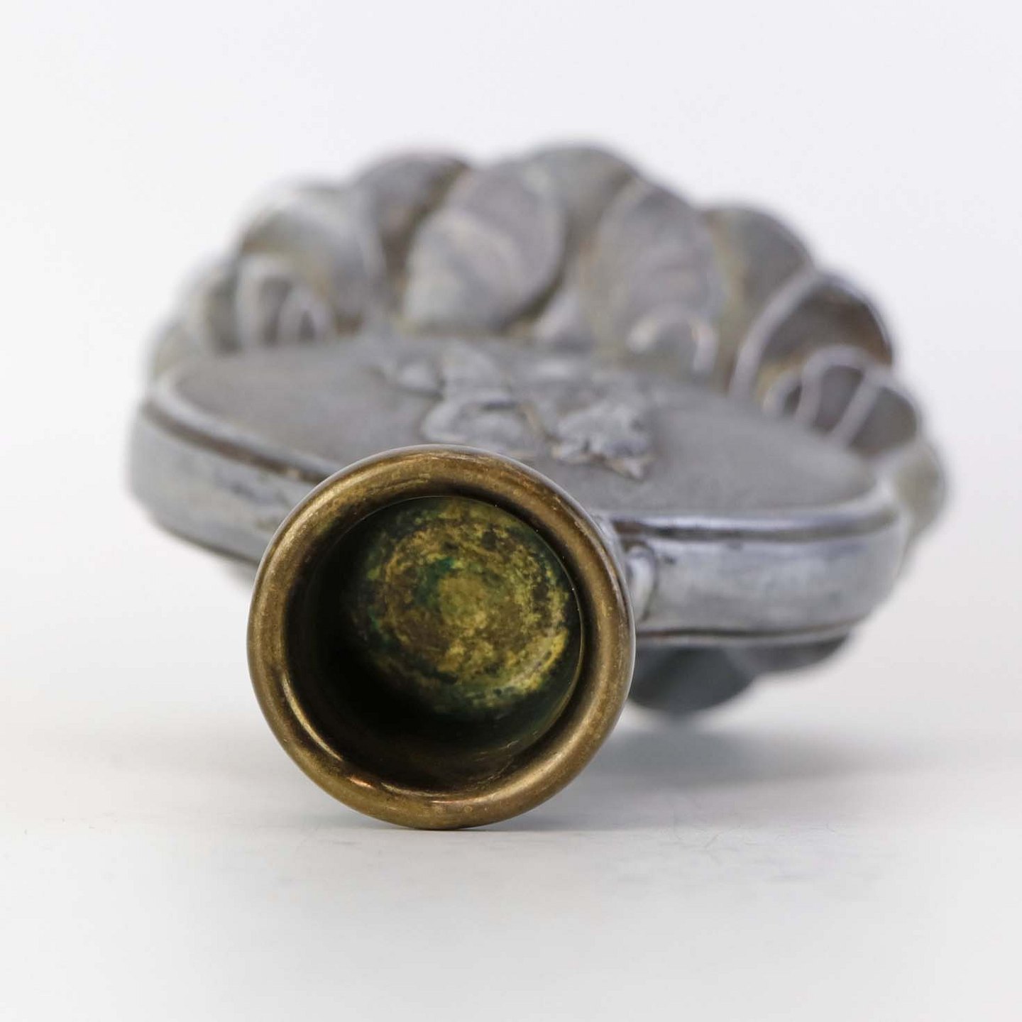 Fremstår med brugsspor på messing.