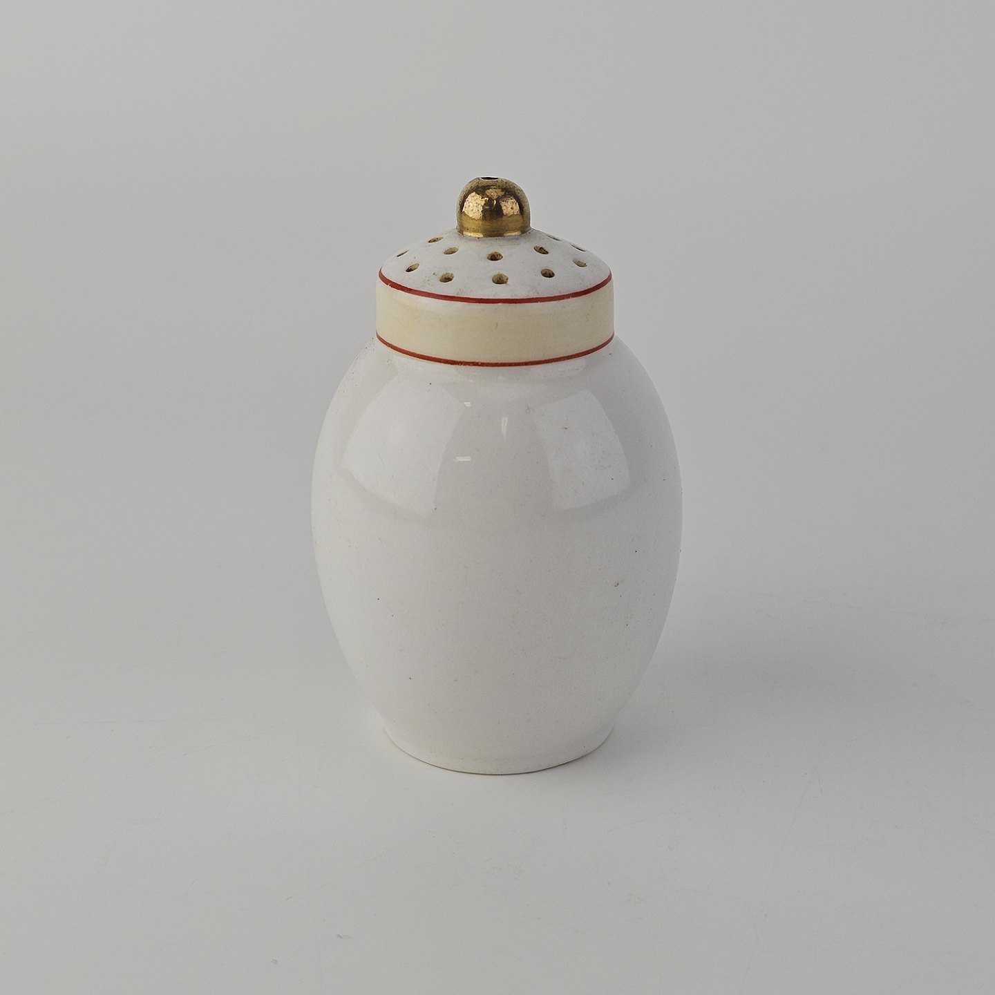 Saltbøsse eller peberbøsse i kongeligt porcelæn fra stellet Det spanske stel. Mangler prop