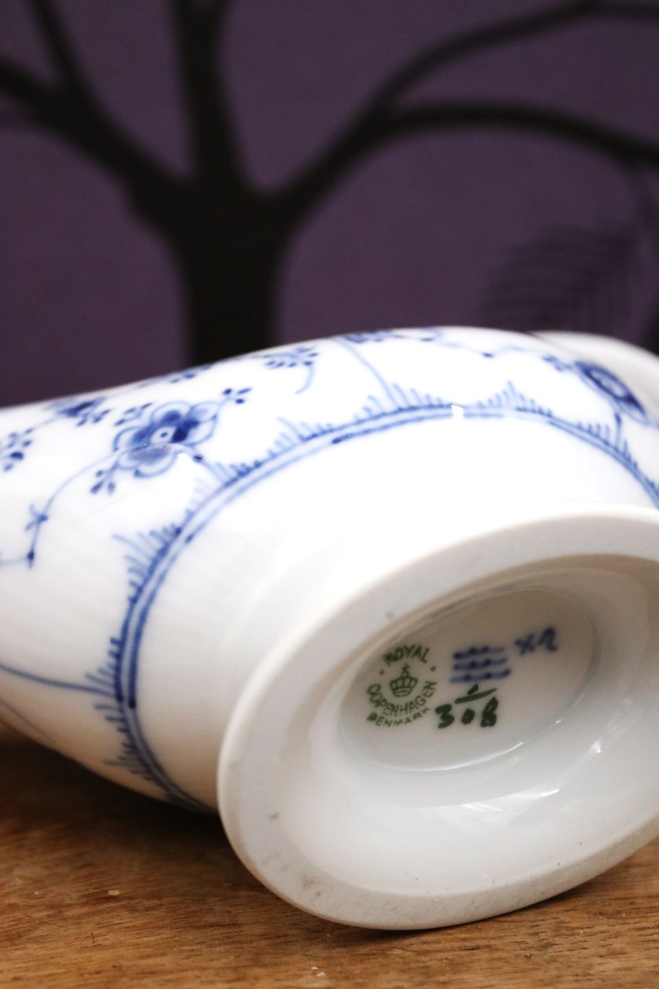 Royal Copenhagen , Musselmalet Riflet lille småkande / sovseskål med hank. Dekorationsnummer: 1/308. 1.sort. 1923-28.