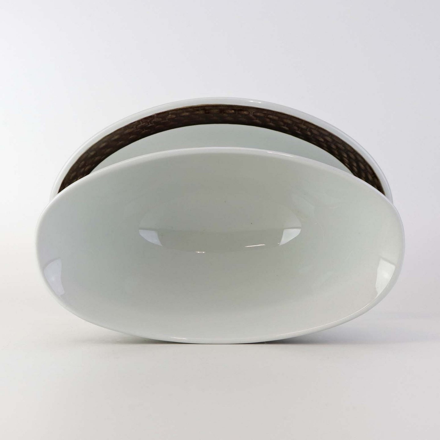 Sovsekande med fast bund i fajance fra stellet Brun Tranquebar fra år 1919. Nr 45/2391