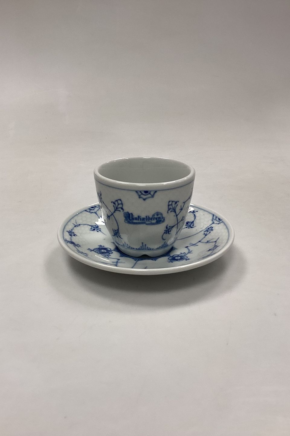 Bing og Grøndahl Blåmalet Musselmalet Hotel med Logo Kaffe -og Underkop No. 744. Logo fra Vinkælderen.