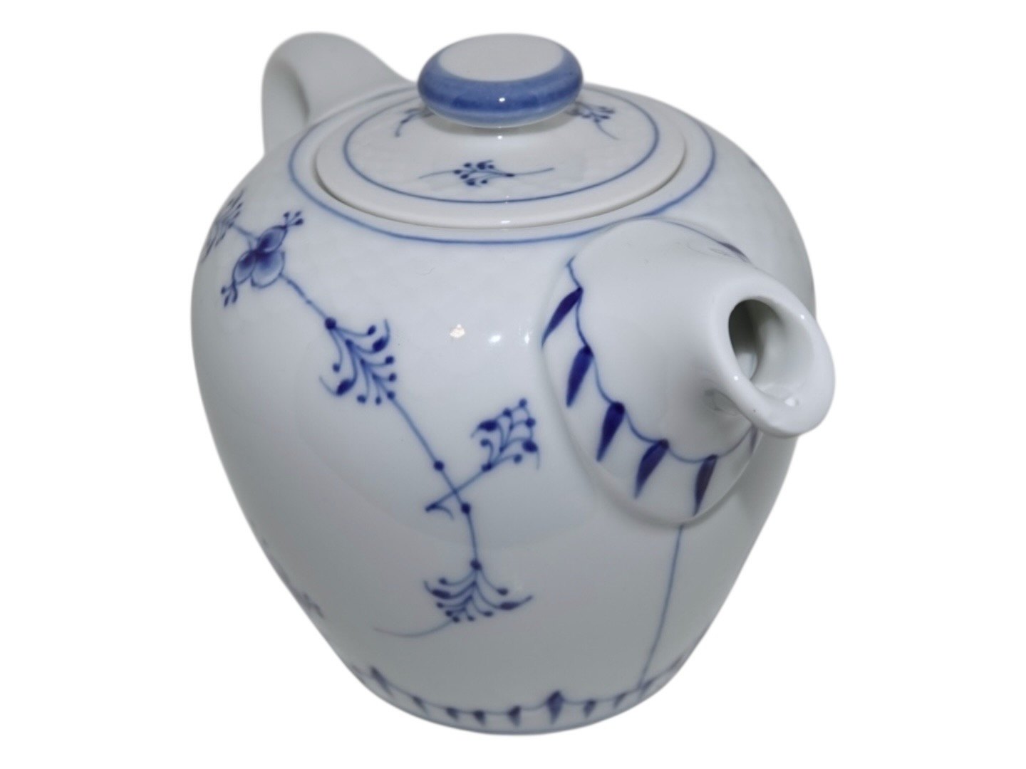 Bing & Grøndahl Blåmalet / Musselmalet tykt jernporcelæn, lille tekande med logo fra Hotel Royal.