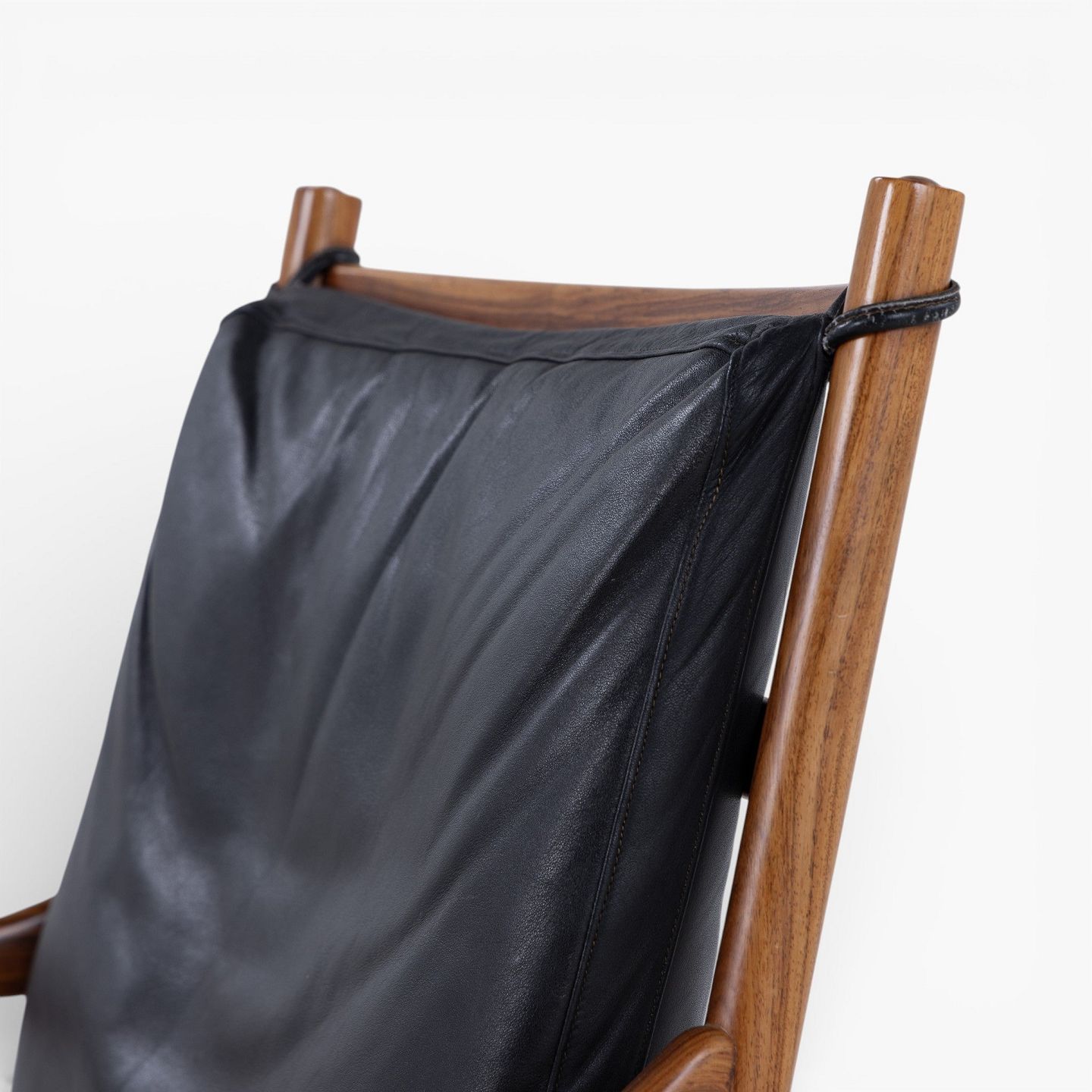 PJ 149 - 'Colonial Chair'-lænestol i palisander med hynder i patineret, sort læder. Mærket fra producent.