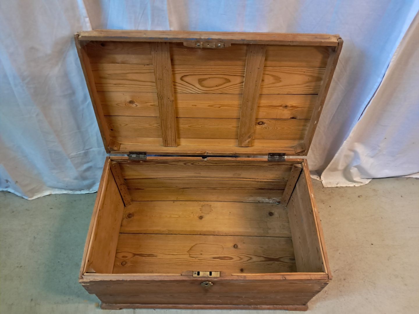 Kiste i massivt fyrretræ, fra 1910erne.