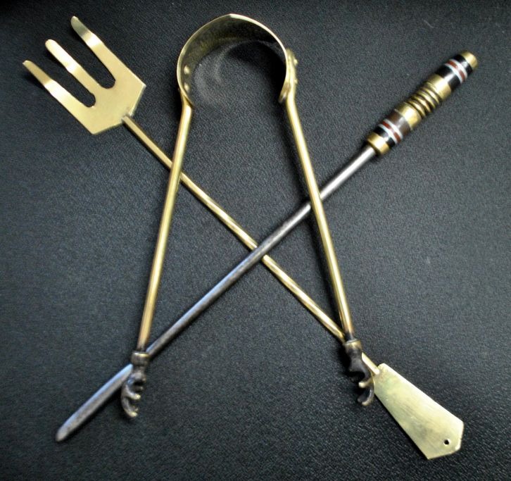 Brass fireplace set, England, 19th century.