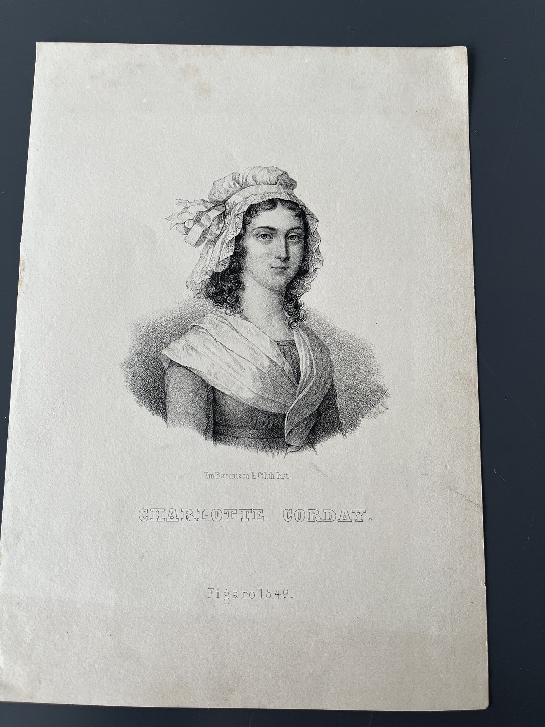 Kvinden der myrdede Jean-Paul Marat (1743-93) under Den Franske Revolution.