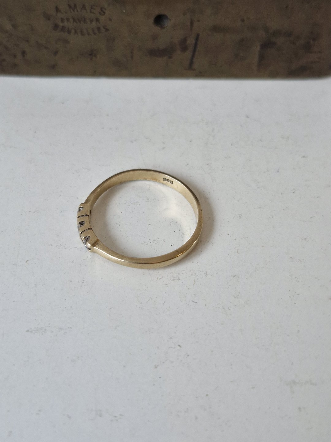 Vintage alliancering i 14 kt guld med 3 små brillanter