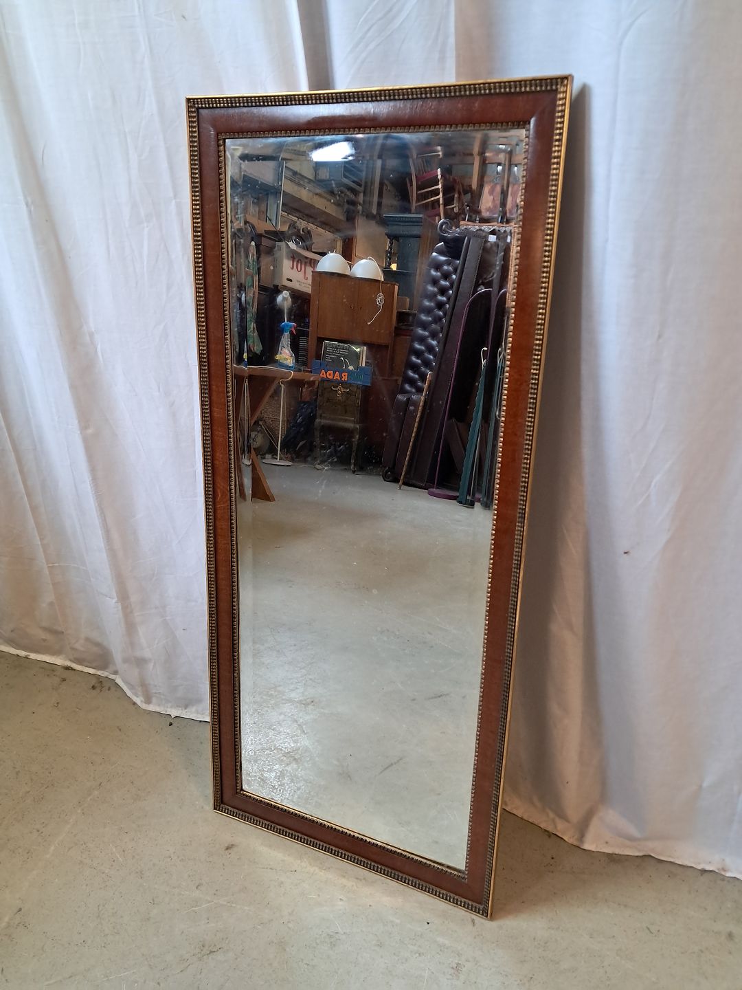 Spejl i fineret mahogni med guldmaling, fra 1950erne.