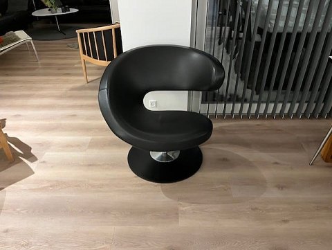 VARIER Peel Club loungestol udført i sort anilinlæder, prisgruppe 6, med træbase i sortlakeret asketræ.
