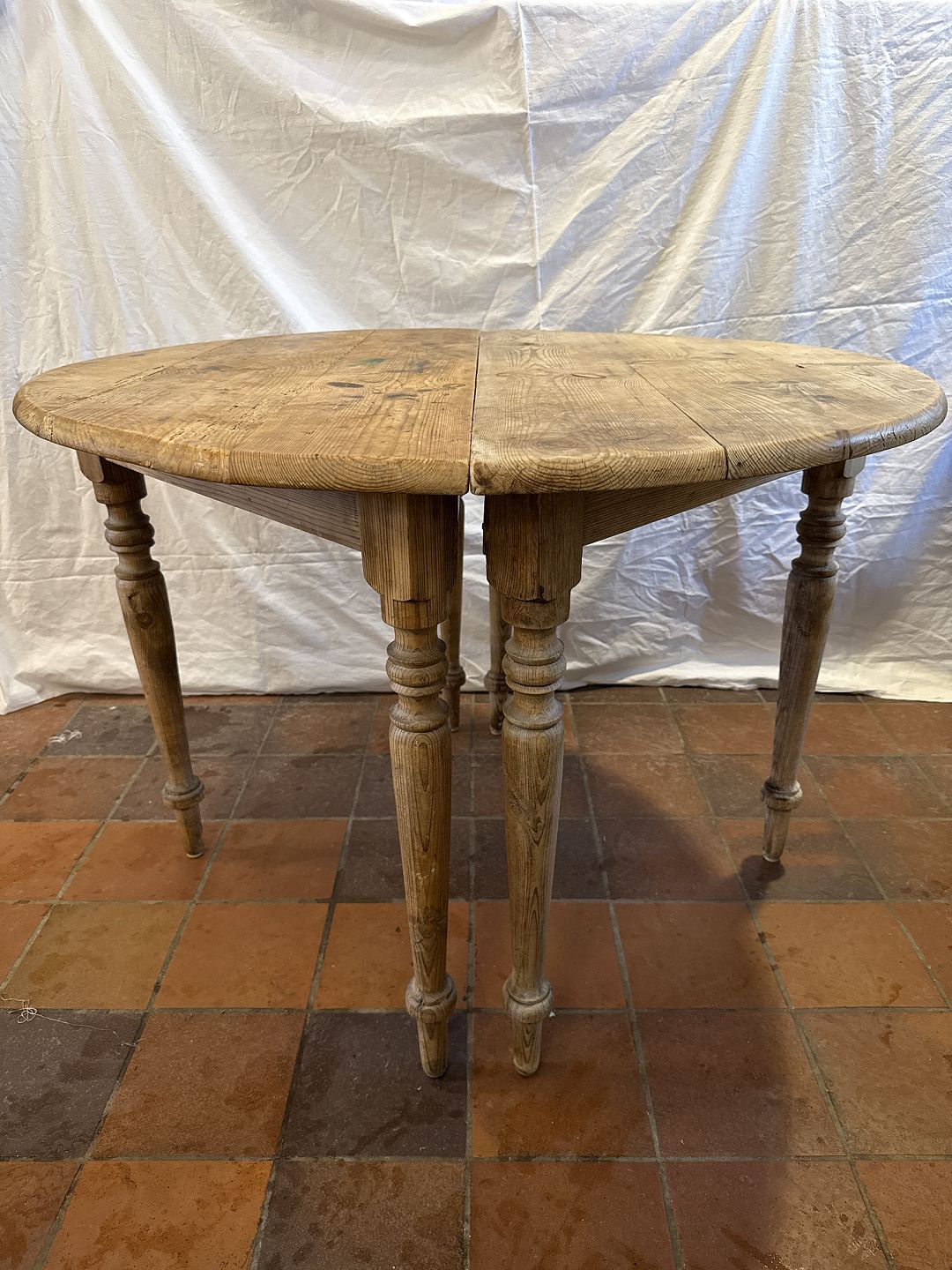 Antikt spisebord i massiv fyrretræ fremstillet ca. 1870'erne.