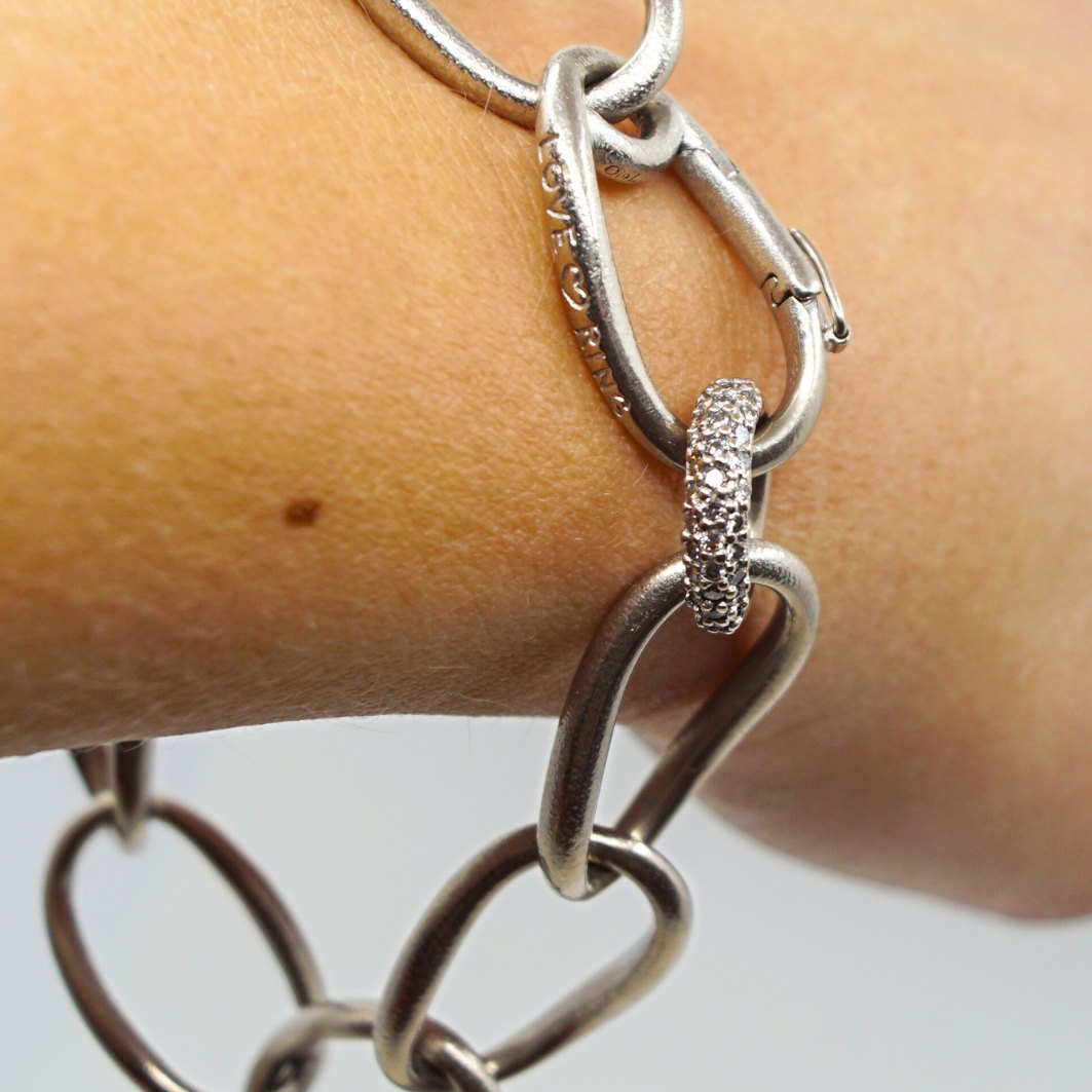 Ole Lynggaard; Leddelt Love armbånd - heavy, i 14 kt. hvidguld med diamanter. Lås med sikkerhedslås.