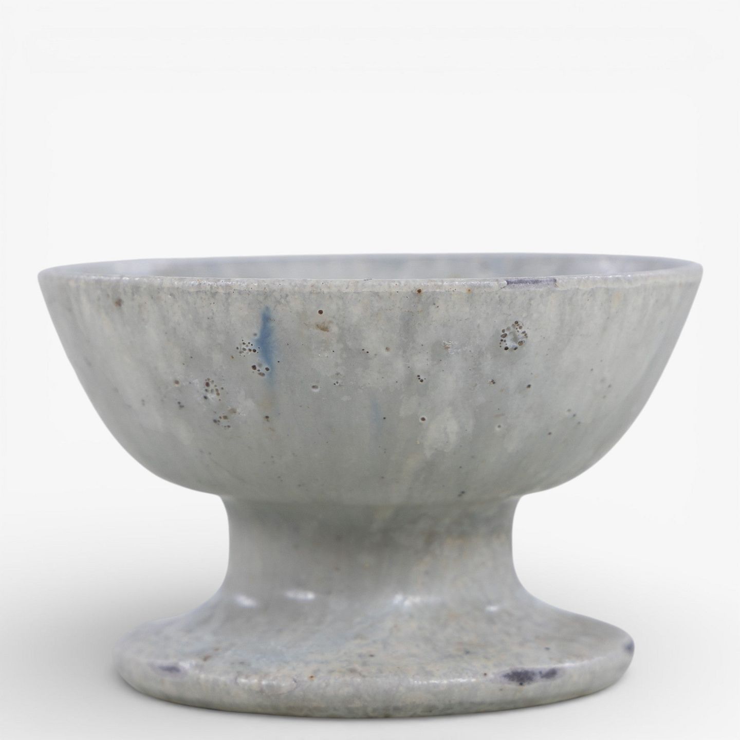 AB 406 - Lav lysestage i stentøj med lys glasur. Signeret.