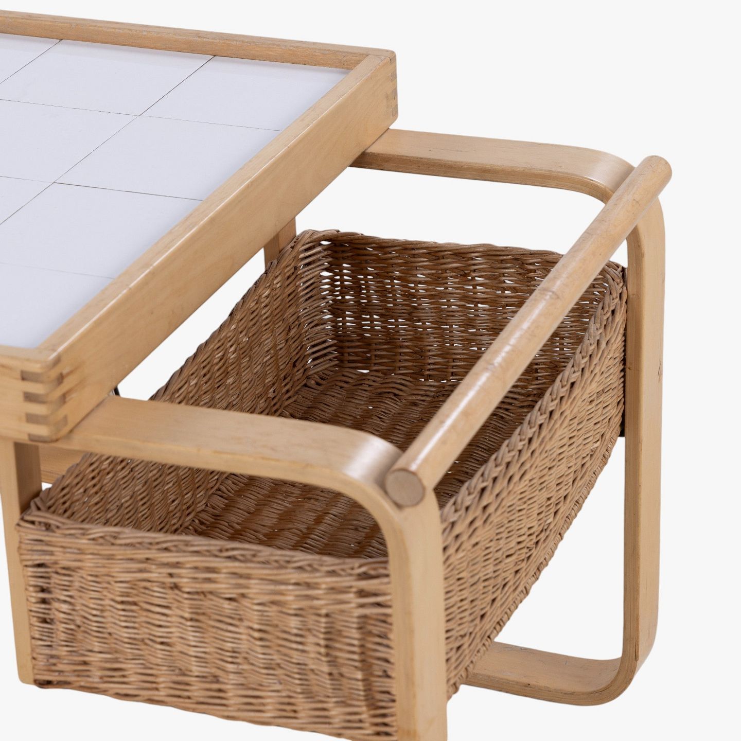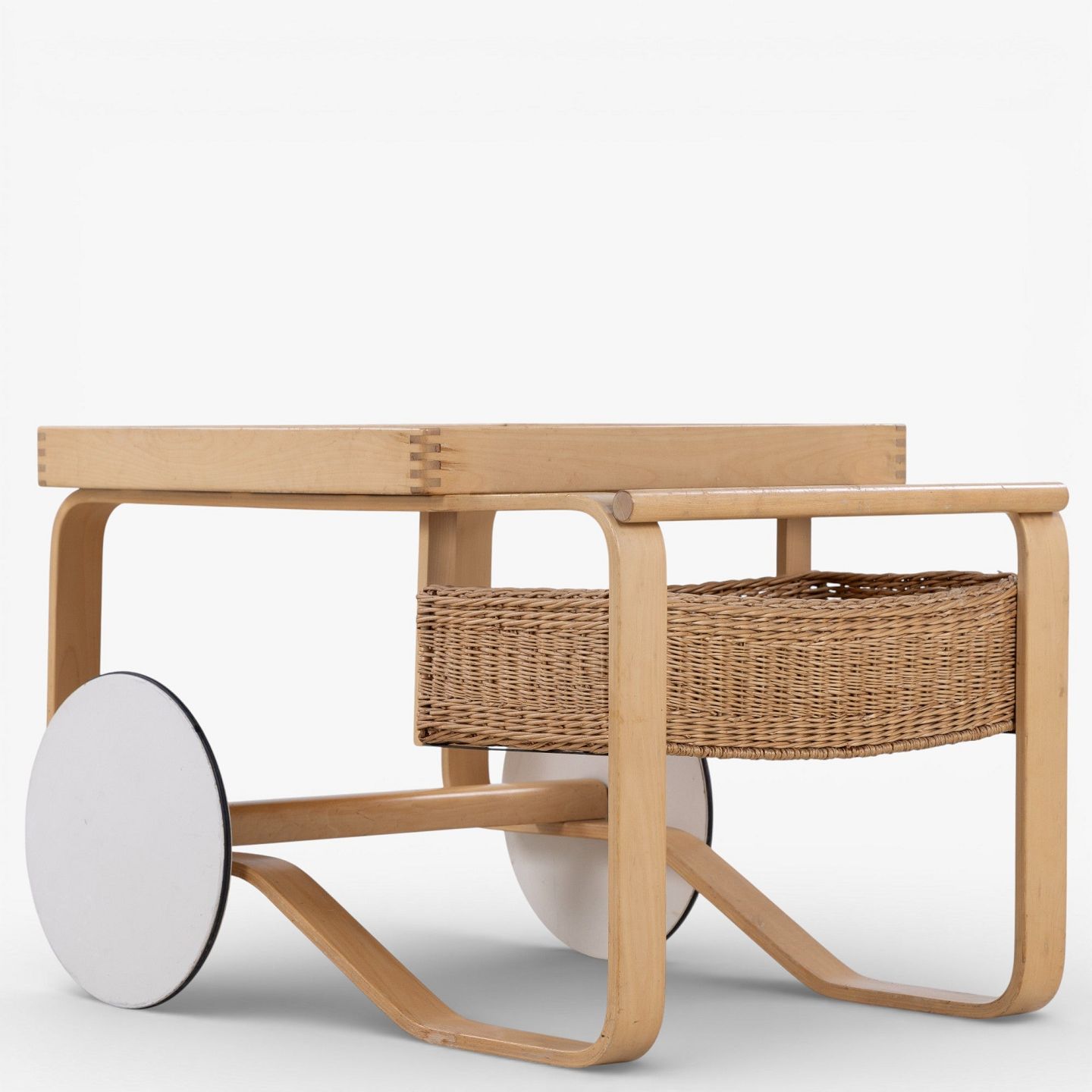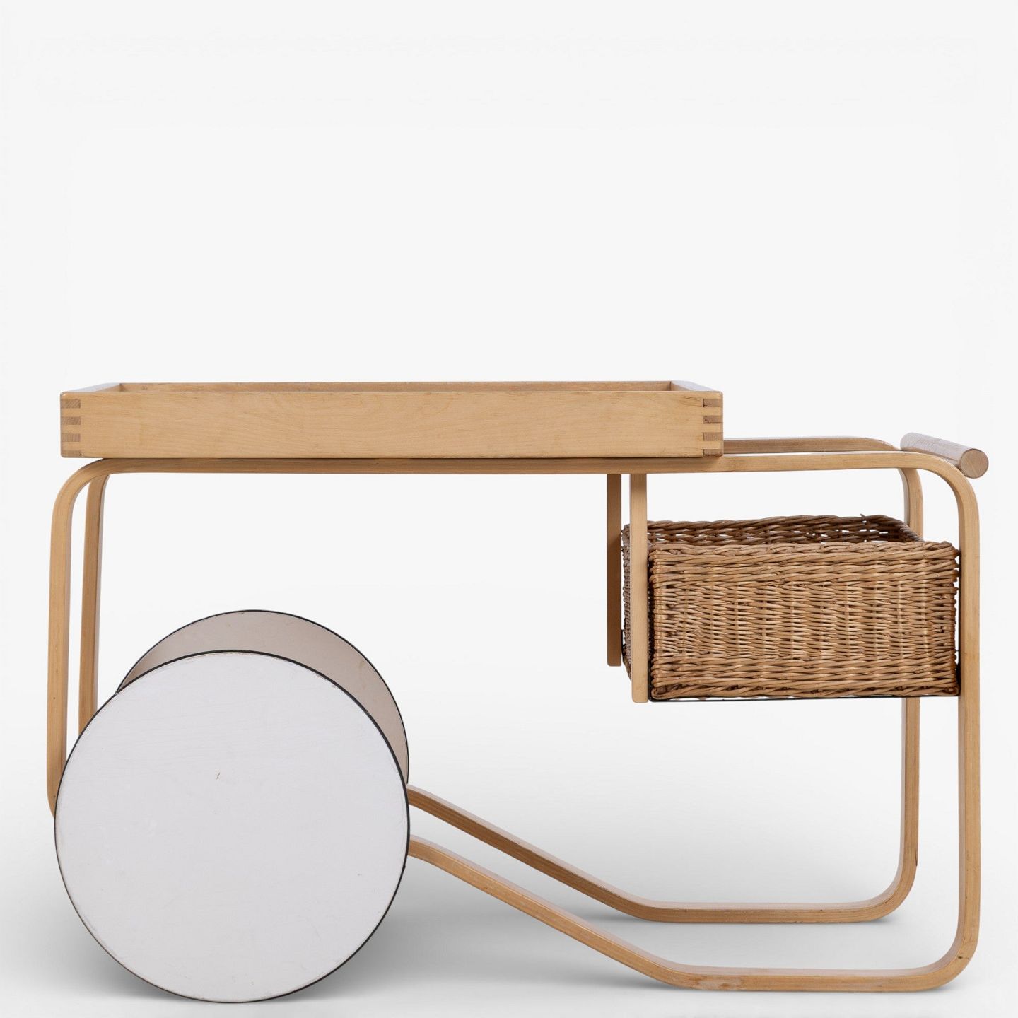 'Tea Trolley 900' - Serveringsvogn i patineret birk med hvide kakler.