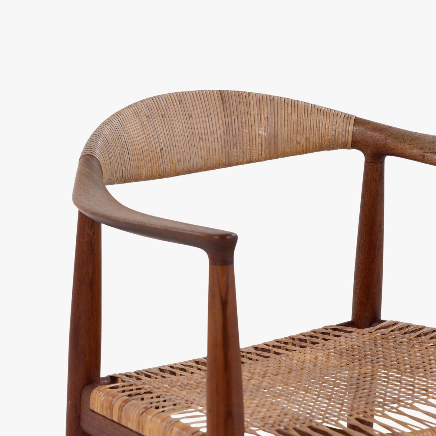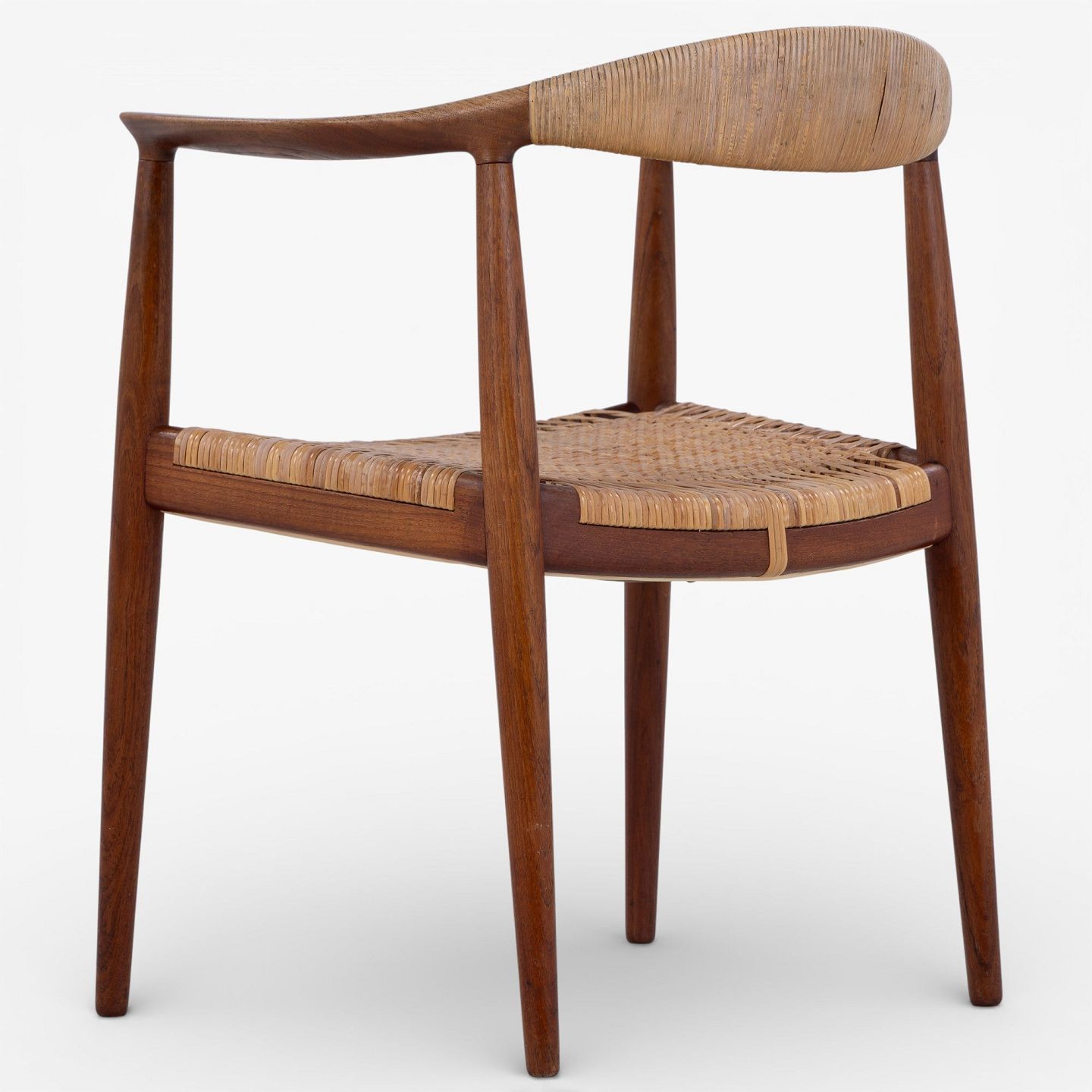 JH 501 - Sæt á 6 'The Chair'-spisestole i patineret teak med sæde og ryg i flet.