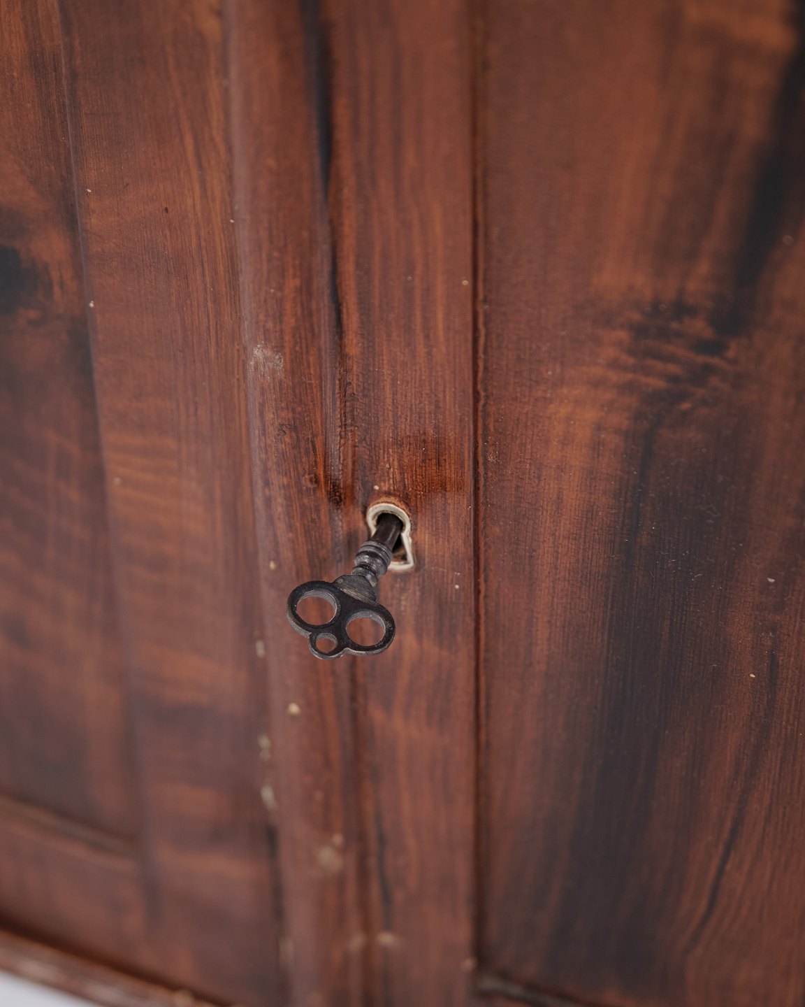 Antikt miniaturemøbel i åremålet fyrretræ med håndsmedede beslag fra 1840’erne. Unikt og dekorativt samlerobjekt med historisk karakter.