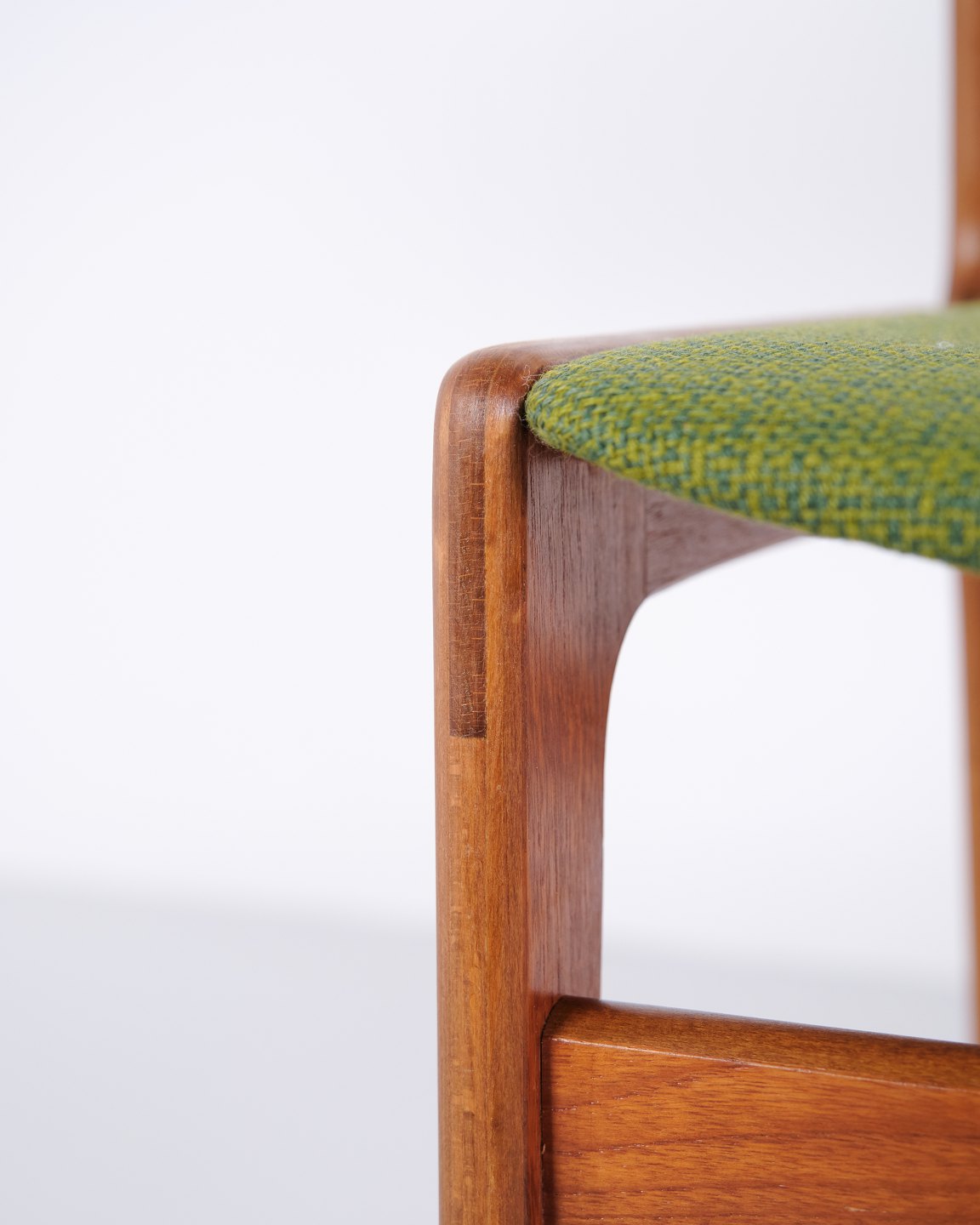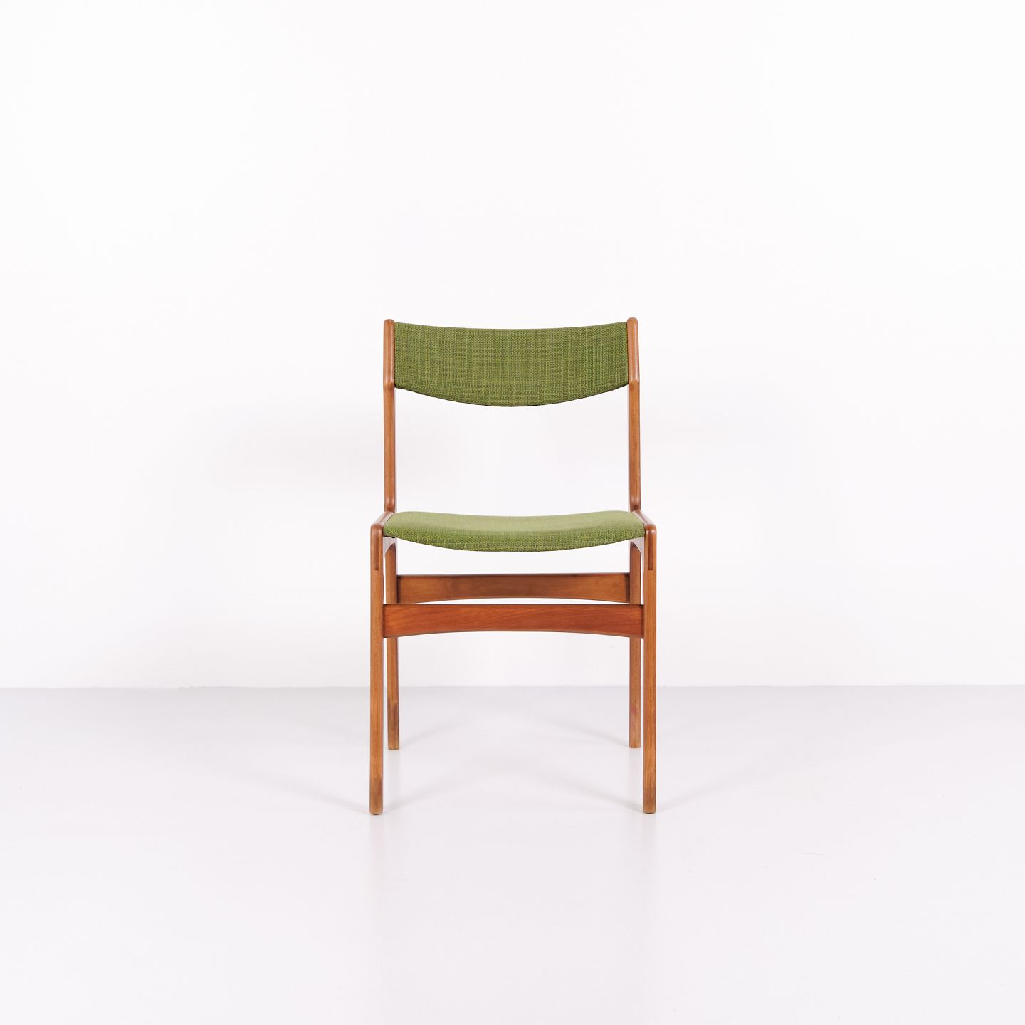 Erik Buch spisebordsstol fra 1960’erne i teak og grønt stof. Klassisk dansk design.