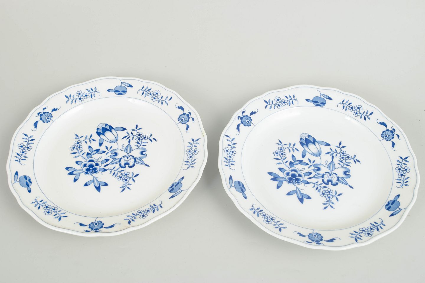 Sæt af to frokosttallerkener i håndmalet porcelæn med Blå Orkidé dekoration. Fremstillet hos Meissen og mærket med Meissen krydssværd. Annulleret med to indridsede streger under bunden.