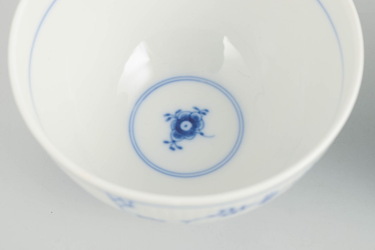 Text zugänglich auf Dänische: Royal Copenhagen Musselmalet Riflet sæt af to skåle.