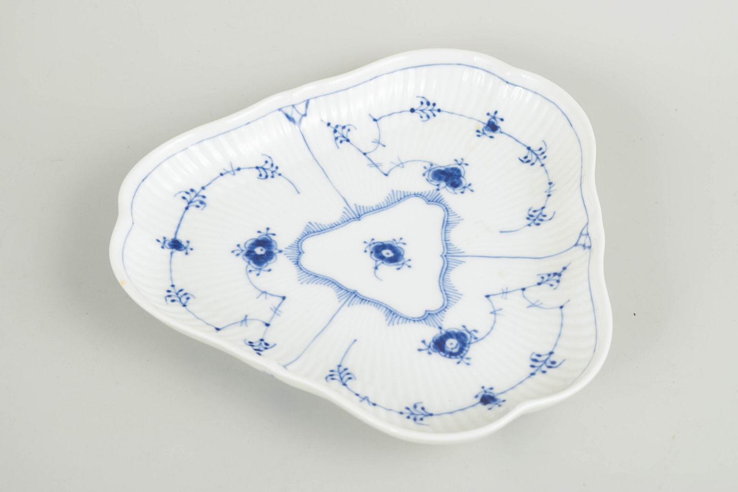 Text zugänglich auf Dänische: Royal Copenhagen Musselmalet Riflet trekantet fad.